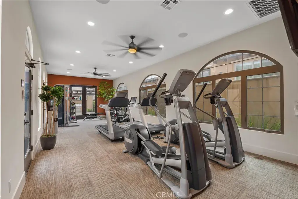 The community offers a vibrant, active lifestyle with a clubhouse and jacuzzi, gym, community garden, and a Bocce ball court, with a dog park conveniently located at the end for pet-friendly enjoyment.