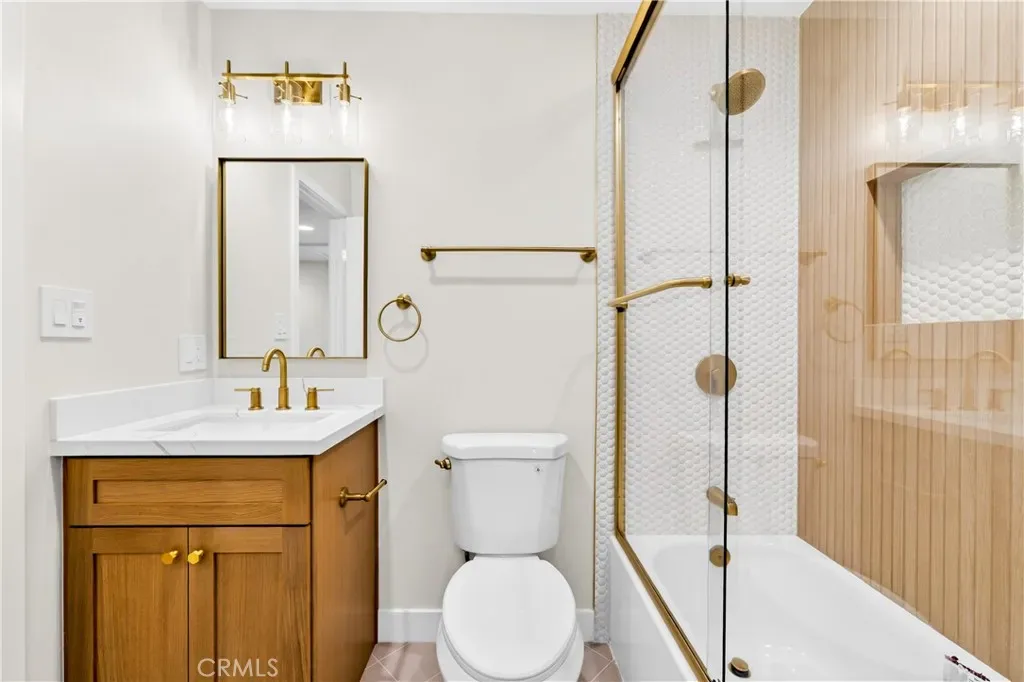 Exquisite SoCal Transitional Modern Remodel – This property offers access to the highly regarded Palos Verdes Peninsula School District. This beautifully reimagined home showcases a warm, light, and airy design with natural tones and layered textures, complemented by champagne bronze fixtures for a polished, cohesive look. Completed as a full custom remodel by a professional contractor, no detail was overlooked. Interior Highlights: All-new Beach Collection Carmel flooring and baseboards, fresh Shoji White walls with Alabaster trim, and recessed lighting. Also includes dual-paned windows and HVAC. Downstairs and the stairwell features Luna Copper Distressed Chevron wallpaper for a sophisticated touch. Kitchen: Custom-designed with a walk-in pantry, breakfast nook, and peninsula. Features newly added cabinets, appliances, veined Calacatta Laza Oro quartz countertops, and a textured herringbone backsplash from counter to ceiling. Woven pendant lighting and wall sconces add artisanal charm. Primary Suite & Bath: Champagne bronze finishes and geometric accents echo the curated wallpaper and tile selections, creating a cohesive, elegant retreat. Sun Circles wallpaper in Cream Gold enhances the ensuite. Downstairs Bath: Fully updated with a new shower addition. Exterior & Patio: Refreshed landscaping with new trees and plants creates a serene outdoor space, perfect for entertaining or relaxing. Living in the Strathmore community of Rancho Palos Verdes offers a serene and well-maintained neighborhood with beautifully landscaped common areas and a welcoming, family-friendly atmosphere. Residents enjoy access to community amenities such as a pool, clubhouse, and walking paths. The location is ideal, with easy access to local parks, top-rated schools, and shopping centers, all just a short drive or walk away. Enjoy the coastal lifestyle with nearby trails, scenic viewpoints, and convenient proximity to dining and everyday essentials. A thoughtfully designed home where every detail elevates the living experience – truly turnkey and move-in ready. Attached to your private patio is your 2-Car detached Garage. You can also enjoy the amenities and magnet programs available through the Los Angeles Unified School District. Just bring your toothbrush!