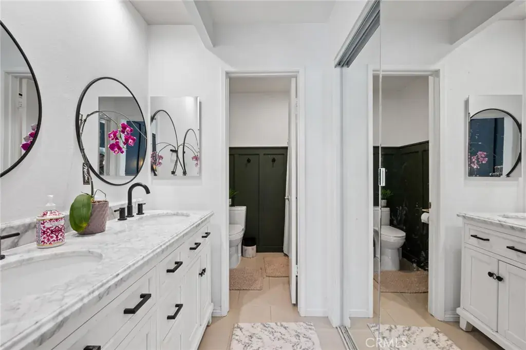 Stylish and spacious 3-bedroom, 2.5-bath residence ideally located near shopping, dining, and conveniences. The open split-level layout features a bright living room with soaring vaulted ceilings, an elegant black-accent fireplace wall, and wide-plank flooring flowing to a private front patio overlooking the community pool. The remodeled kitchen showcases shaker cabinetry, quartz countertops, brass hardware, and stainless appliances, opening to a chic dining area with plantation shutters. The primary suite offers dramatic vaulted ceilings, a custom accent wall, and a beautifully remodeled bath with dual marble vanities. Additional highlights include crown molding, recessed lighting, and a direct-access two-car garage. Located within the highly rated Palos Verdes School District, this home combines quality, comfort, and incredible Peninsula value.