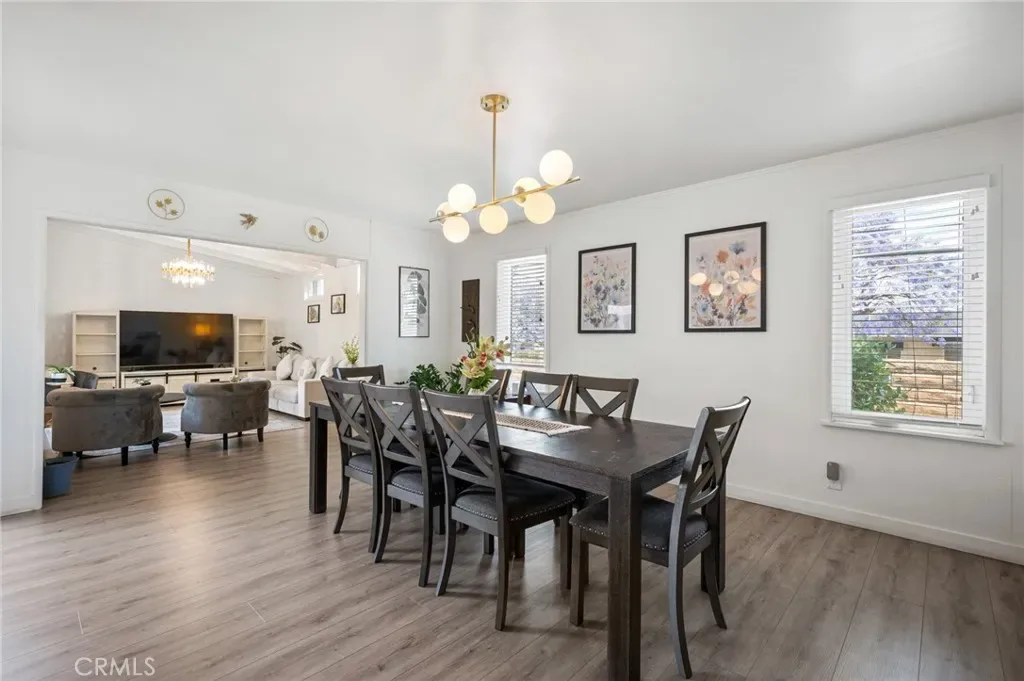 Nestled in the highly sought-after neighborhood of Rancho Palos Verdes, this beautifully remodeled mid-century home offers 4 bedrooms and 2 bathrooms, thoughtfully designed with both comfort and style in mind, spanning over 2,000 sq ft on an expansive 8,441 sq ft lot corner lot! Step inside to discover a light-filled interior featuring newer luxury vinyl flooring, updated electrical throughout, HVAC system, newer roof, dual-paned windows and sliders, and designer lighting that enhances every space. The well-designed floor plan offers seamless flow between two spacious living areas, a formal dining room, and a charming breakfast nook with bar seating—perfect for both everyday living and entertaining. The updated kitchen serves as the heart of the home, combining functionality with modern appeal. While the main living spaces invite connection, the bedroom wing provides privacy and retreat. All bedrooms offer ample closet space with the rear bedroom opening to the back patio area. Outdoors, the secluded and tranquil backyard is an entertainer’s dream, complete with a tastefully stamped concrete patio, fresh landscaping, fruit producing guava and banana trees, and low-maintenance, water-saving turf. Additional features include an oversized two-car direct access garage, large paver driveway with ample parking, and two outdoor storage sheds. Situated on a desirable corner lot, the property is framed by ivy-covered brick walls that offer both charm and privacy. Ideally located near shopping, dining, parks, and easy freeway access, this home is also just a short drive from top rated PV schools, the upcoming West Harbor development, and the beautiful peninsula coastline.