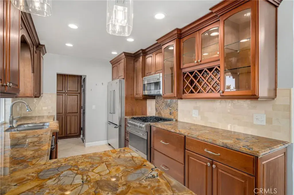 Enjoy stunning city views from the comfort of your home, along with lush, professionally landscaped gardens that surround the property. The interior features an open and bright floor plan with tastefully updated finishes throughout. The remodeled kitchen seamlessly connects to the dining and living areas, creating a perfect space for both entertaining and everyday living.
