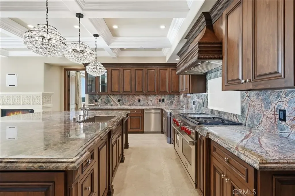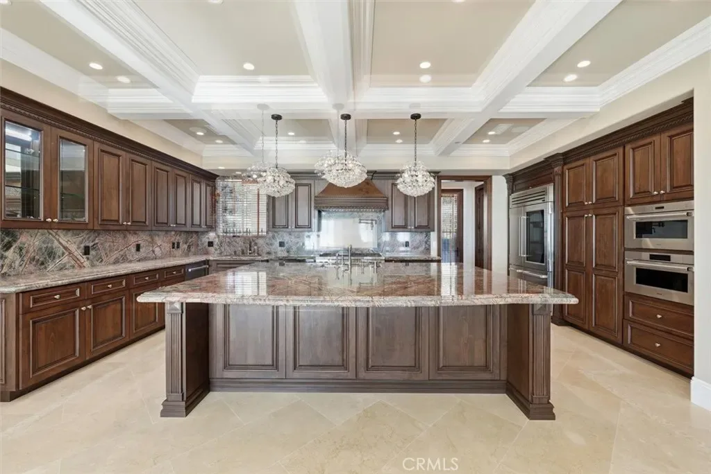 Courtesy of The Agency. Disclaimer: All data relating to real estate for sale on this page comes from the Broker Reciprocity (BR) of the California Regional Multiple Listing Service. Detailed information about real estate listings held by brokerage firms other than James Outland include the name of the listing broker. Neither the listing company nor James Outland shall be responsible for any typographical errors, misinformation, misprints and shall be held totally harmless. The Broker providing this data believes it to be correct, but advises interested parties to confirm any item before relying on it in a purchase decision. Copyright 2026. California Regional Multiple Listing Service. All rights reserved. Step through grand mahogany doors into a world defined by craftsmanship and comfort. Crema Marfil stone floors, alder cabinetry, and oak wood accents complement three elegant gas fireplaces in the living room, den, and primary suite which leads to a large primary bath with jacuzzi tub and walk in steam shower. The designer kitchen is a chef’s dream, featuring granite slab countertops, a Wolf 6-burner range with griddle, Sub-Zero refrigerator, large wine fridge, dual sinks, two dishwashers, and a custom walk-in pantry with pull-out drawers.