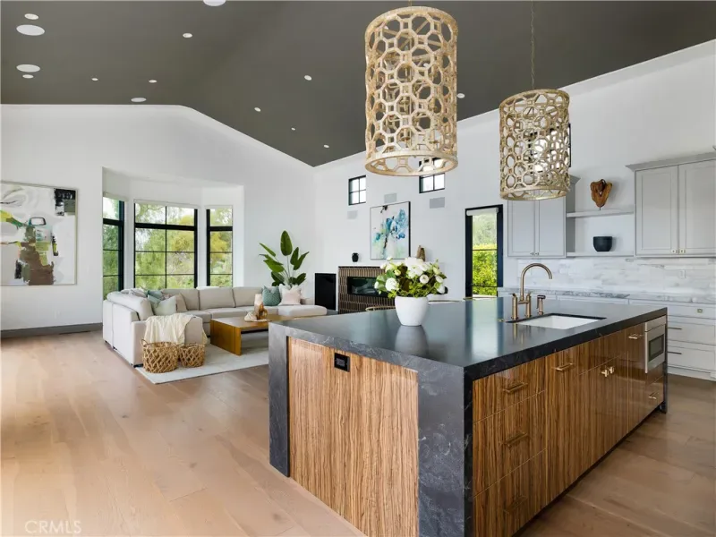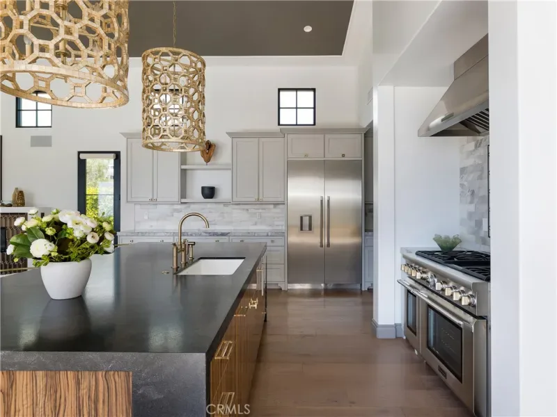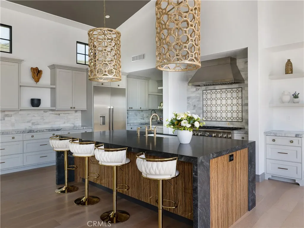Courtesy of Compass. Disclaimer: All data relating to real estate for sale on this page comes from the Broker Reciprocity (BR) of the California Regional Multiple Listing Service. Detailed information about real estate listings held by brokerage firms other than James Outland include the name of the listing broker. Neither the listing company nor James Outland shall be responsible for any typographical errors, misinformation, misprints and shall be held totally harmless. The Broker providing this data believes it to be correct, but advises interested parties to confirm any item before relying on it in a purchase decision. Copyright 2026. California Regional Multiple Listing Service. All rights reserved. The chef’s kitchen is both refined and functional, complete with a leathered marble island, Thermador appliances, Italian Macassar Ebony cabinetry, rose gold Brizo fixtures, and a butler’s pantry with built-in coffee station.