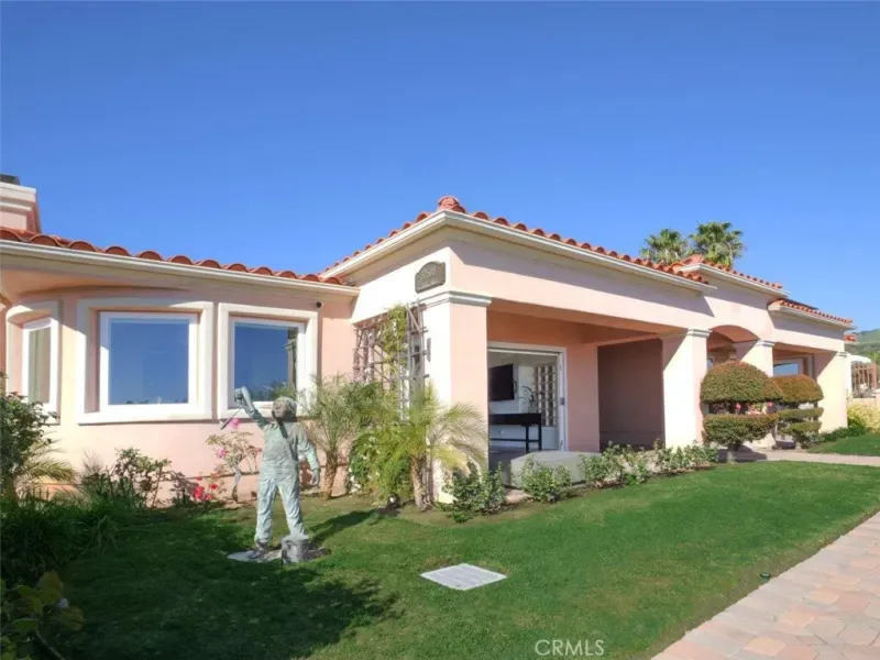 Experience modern luxury living in this ONE LEVEL custom-built SINGLE FAMILY RESIDENCE with PANORAMIC Pacific Ocean, Catalina Island, sunrise and sunset views, with no HOA dues! This exceptional home offers peace, privacy, and seamless indoor-outdoor living, with breathtaking vistas enjoyed from the primary suite, living and formal dining room. Recent upgrades include a solar system with two Tesla batteries, a smart-home system, sound-proof windows/sliding doors, recessed lighting, electric shades, and refinished wood flooring. Architectural details such as arched doorways and beamed cathedral ceilings add distinctive character while filling the house with natural light. The living room is ideal for entertaining, featuring an accordion door that opens wide to a front ocean-view private patio with outdoor seating, a fire pit, and an ice cooler. It effortlessly transitions from an ideal setting for fun gatherings with a nearby TV to a private retreat for morning coffee or evening wine, framed by mesmerizing ocean views and the warm glow of a fire pit. The spacious chef’s kitchen has many updated appliances, lots of cabinets and counter space and a large center island with vegetable sink. It opens to both the formal dining room with ocean views and a large family room with fireplace and surround sound. This well-designed home places all bedrooms on one wing. The primary suite includes a sitting area to take in the mesmerizing views, a cozy fireplace, and a walk-in closet. The second en-suite bedroom offers additional privacy with its own bath and a generous mirrored closet. Two additional bedrooms are well sized with ample closet space, and share a full hallway bathroom. A walk-in pantry/storage closet, powder room, and laundry room add everyday convenience. Accessible from the foyer, family room, and a secondary bedroom, a secluded central courtyard further enhances the indoor-outdoor lifestyle with a built-in BBQ and water fountain. The landscaped backyard has a grassy area, surrounded by avocado and peach trees. There are also 2 sheds for storage, and a freestanding shed for a home office, gym, or creative space. A covered carport and EV charger add extra value to this coastal retreat. Located in the top-rated Palos Verdes unified school district and close to ocean trails & Terranea Resort, this home offers exceptional access to outdoor recreation and coastal amenities. Don’t miss the opportunity to enjoy Southern CA coastal living at its finest!
