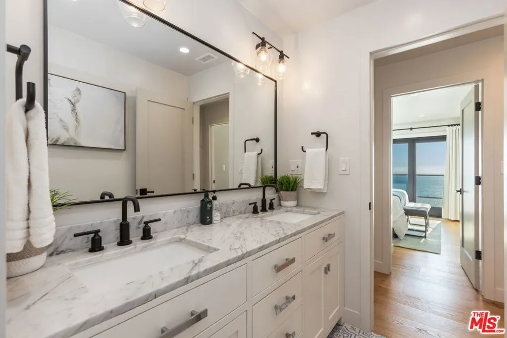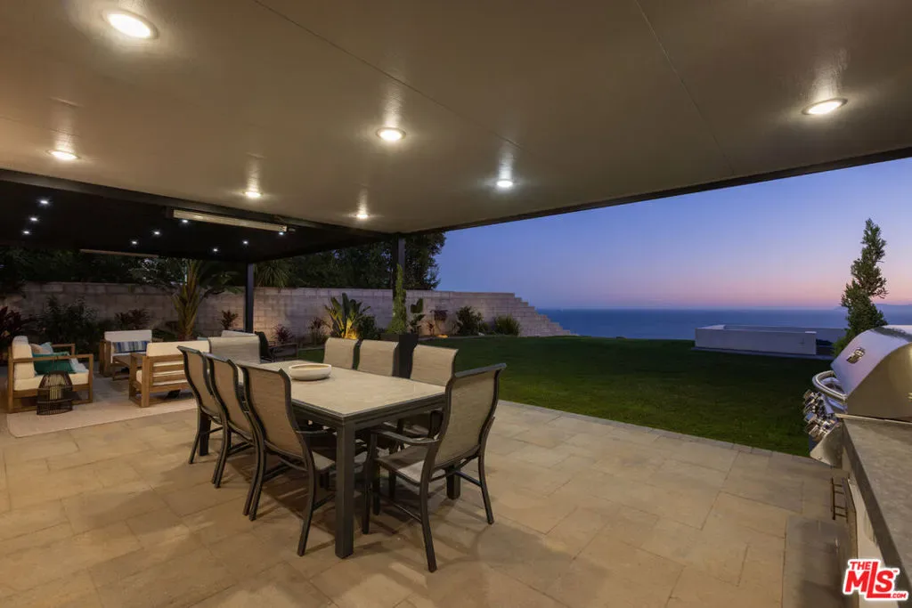 Situated on a quiet cul-de-sac street high above the Rancho Palos Verdes coastline, this stunning home boasts four bedrooms, three bathrooms, and over 2,500 square feet of thoughtfully designed living space with quality finishes throughout. Exquisitely remodeled from top to bottom, this residence offers a seamless blend of sophistication and comfort, all set against a backdrop of sweeping, unobstructed ocean views. Inside, the entry flows seamlessly into a spacious living area highlighted by a custom-built entertainment wall complete with a fireplace. At the heart of the home is a chef’s kitchen equipped with brand-new Thermador luxury appliances. A grand center island, custom cabinetry, and marble countertops create a space that is both elegant and functional. Additional features include a built-in refrigerator, dual-oven range, and a wet bar. The lower level also offers a custom-built office, a full bathroom, and additional built-in storage located above the garage. Upstairs, you’ll find three additional bedrooms, a full bathroom, and the primary suite. The primary is complete with a walk-in closet and an en-suite bathroom that features a dual vanity, walk-in shower, and soaking tub. Set on a generous 12,000+ sq. ft. lot, this property offers the neighborhood’s largest flat backyard. Inviting yet private, the expansive grounds provide endless space to dine, entertain, and lounge. The backyard features a covered patio with built-in heaters, a fully equipped outdoor kitchen with a natural gas grill and sink, and a sunken fire pit perfect for enjoying sweeping views of the Pacific Ocean, Catalina Island, and Trump National Golf Course.