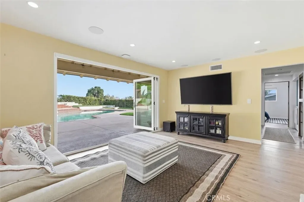 Seamless indoor-outdoor living is achieved through a panoramic door that opens from the family room to a spectacular backyard retreat. The expansive, flat yard offers breathtaking ocean views, a large pool with diving board, an outdoor bathroom and ample space for entertaining, relaxing, or creating your dream outdoor environment. Tankless water heater, LifeSource whole-house water filtration system, New washer and dryer hookups, Smart door lock system, Fully integrated security system with six hardwired, night-vision exterior cameras plus Ring cameras in front and back, Surround sound system in the living room, backyard, and garage.