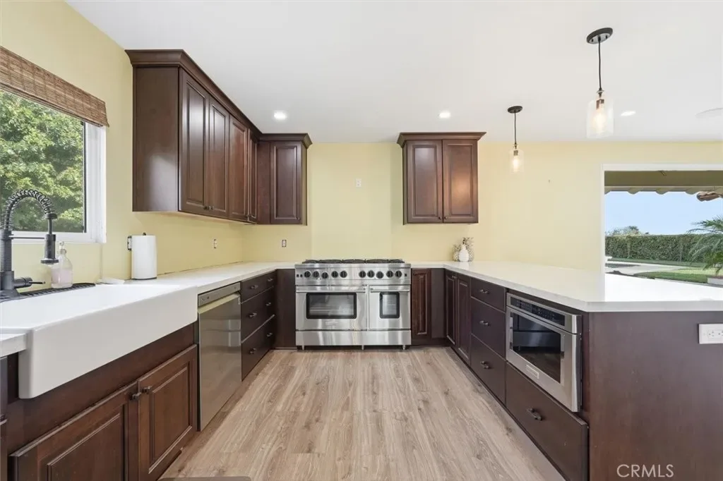 Completely renovated and taken down to the studs, this exceptional residence offers a rare opportunity to own a truly turnkey home in the coveted Ladera Linda Neighborhood of Rancho Palos Verdes. Where every major system and finish has been thoughtfully upgraded. No detail has been overlooked. The home features all new water, waste, and gas lines, along with a new furnace located in the attic and enhanced with Google-controlled Wi-Fi smart technology. The entire electrical system has been replaced, including a new panel, recessed lighting throughout, and upgraded outlets. Inside, the home showcases all-new scratch-resistant flooring, custom closets in every bedroom, and fully remodeled bathrooms featuring elegant finishes, glass shower enclosures, double showerheads, and enhanced storage. Both the living room and family room are anchored by stunning stone fireplaces, replacing the original brick for a more sophisticated, modern aesthetic. The heart of the home is a beautifully redesigned kitchen, complete with a 48-inch BlueStar range with eight burners, new dishwasher, farmhouse sink, wine fridge with dual temperature control, and thoughtfully curated finishes—perfect for both everyday living and entertaining.