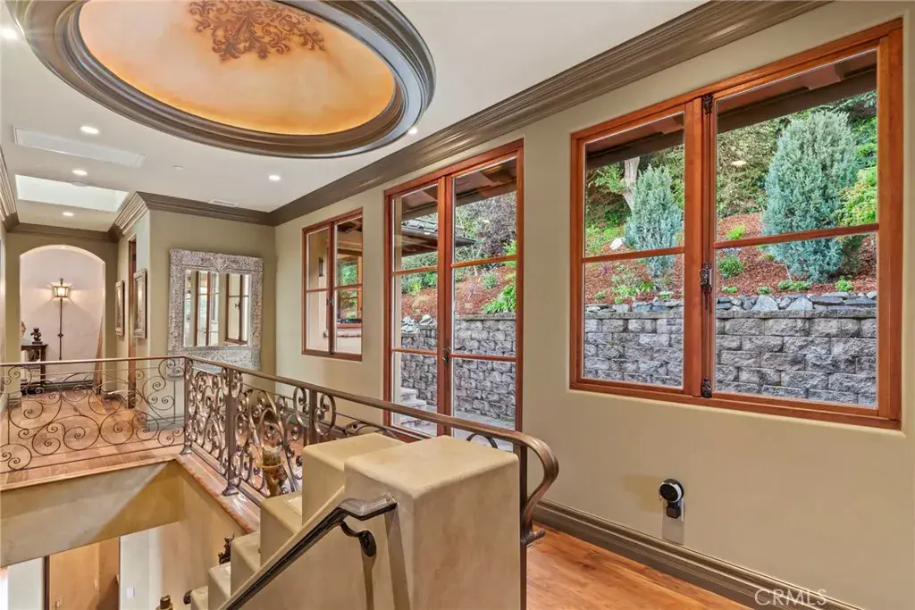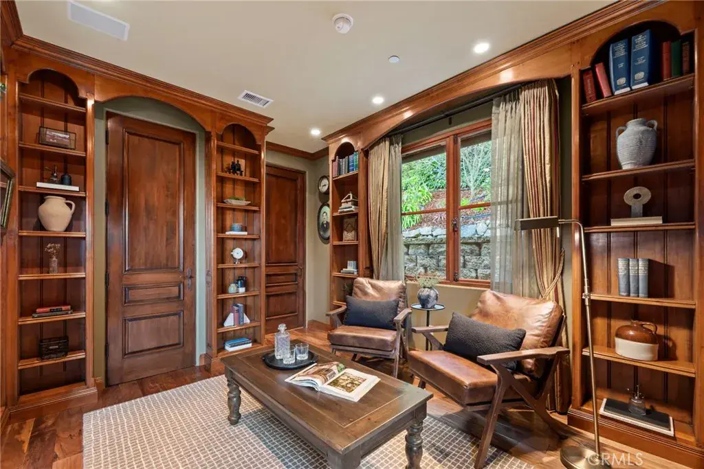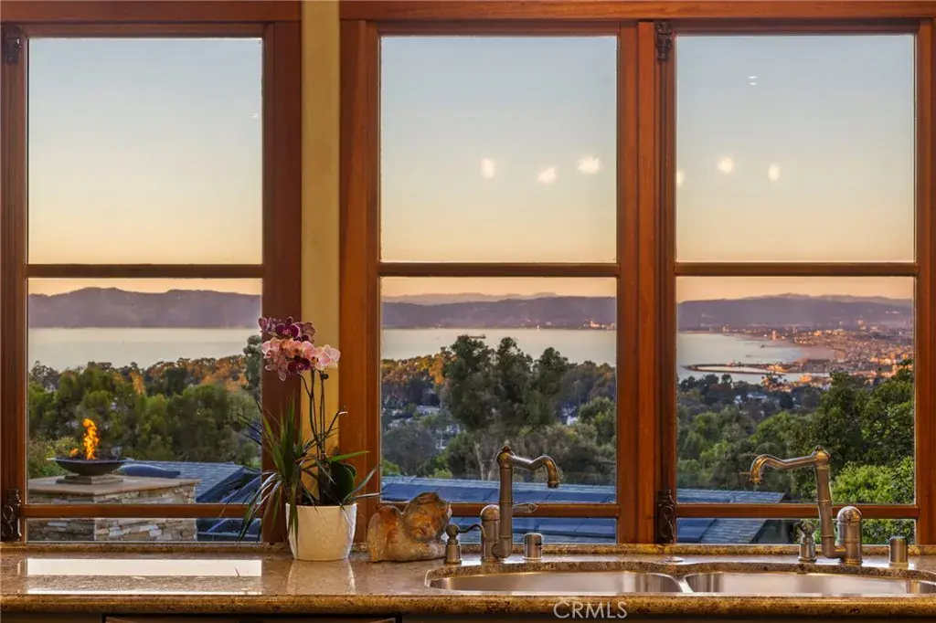 Available for the first time ever, 4 Yellow Brick Road is a custom Italianate estate tucked away on a private cul-de-sac shared by only seven homes. Defined by timeless architecture, exceptional craftsmanship, and sweeping coastal views, the residence stands as a true original. Designed by renowned architect Doug Leach, the home has been featured in magazines and commercials and has influenced multiple South Bay residences since its completion in 2005. Built as a forever home, the owners worked closely with the architect to create a floor plan that seamlessly balances multigenerational living with elevated entertaining. Spanning 6,468 square feet on an over half-acre lot, the home is thoughtfully oriented to capture 180-degree ocean and city views from nearly every room, creating a constant connection to its elevated setting. Ideally located within walking distance of the Palos Verdes Golf and Tennis Club and just minutes from Riviera Village and Redondo Beach, the property also offers convenient access to acclaimed restaurants and scenic coastal trails. The residence offers five bedrooms plus a library that functions as a sixth bedroom, along with seven bathrooms and an impressive collection of resort-style amenities. A Skip Phillips designed infinity pool and spa anchor the outdoor spaces, surrounded by lush gardens and multiple private areas for entertaining. Inside, a home theater with a 110-inch screen, two-stop elevator, and temperature-controlled wine cellar provide comfort and convenience. The chef’s kitchen features custom French Traditions cabinetry, Miele double ovens, a full-size Sub-Zero refrigerator, warming drawers, a built-in espresso machine, and an expansive butler’s pantry ideal for hosting memorable gatherings. Upstairs, the primary suite serves as a private retreat with double walk-in closets, a spa-like his-and-hers bathroom finished in honey onyx marble, and a jetted tub overlooking both Downtown Los Angeles and the Queen’s Necklace. Hand-selected finishes throughout include lighting by Fine Art, Belgard stone retaining walls, an Olympic stone pool deck, imported Italian tile and brick, walnut hardwood flooring, natural limestone, ceiling beams sourced from a historic French barn, and gates accented with wood imported from India. Rare and emotionally compelling, this is a home that must be experienced to be truly appreciated. An opportunity that comes along once in a lifetime.