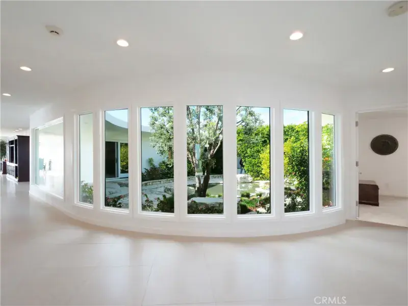 Signature Palos Verdes stone, quarried directly from the property, is thoughtfully integrated throughout the home, grounding the architecture in a natural, organic elegance that is increasingly rare. Outdoors, a serene koi pond enhances the tranquil setting and can be converted into a custom pool if desired.