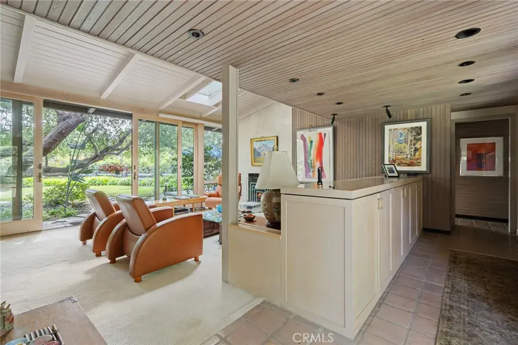 FINANCING NOT POSSIBLE ON THIS PROPERTY. MUST BE ALL CASH. Nestled in lush gardens with mature trees and expansive grassy areas, this architectural masterpiece is a stunning fusion of Japanese design and mid-century modern aesthetics. Situated on a rare half-acre lot, the home is built on a double foundation with extra-thick cement. Inside, every detail reflects meticulous craftsmanship. Solid bleached vertical grain white oak doors feature custom Rosewood knobs, while the chef’s kitchen boasts top-tier Viking appliances, a multi-burner cooktop with grill, and exquisite Paradiso Granite counters with Braun steel soft-close drawers. Solid maple cabinetry adds warmth, complemented by 8” x 8” Spanish tile flooring in the kitchen and hallway. Designed for seamless indoor-outdoor living, the estate offers expansive decks crafted from premium wood, free of knots, creating a tranquil retreat in nature. The Japanese-inspired steam shower features etched Reed pattern glass doors, black walnut-framed cabinets, and teakwood doors, elevating the spa-like experience. Rich in history, this estate was once the heart of Vanderlip Estate gatherings in the 1930s, hosting Hollywood legends like Clark Gable. The grounds include one of the world’s largest olive trees, with a 60-foot spread, famously used in Vanderlip’s Christmas photos. Modern luxuries include German-engineered Grohe fixtures, a tankless water heater with a circulating pump, and an on-site propane tank. This extraordinary estate is a true paradise, where timeless architecture meets natural beauty. NOTE: this property is located in an area of Rancho Palos Verdes experiencing active land movement. This home has NOT been affected and shows no signs of movement inside or outside the home.
