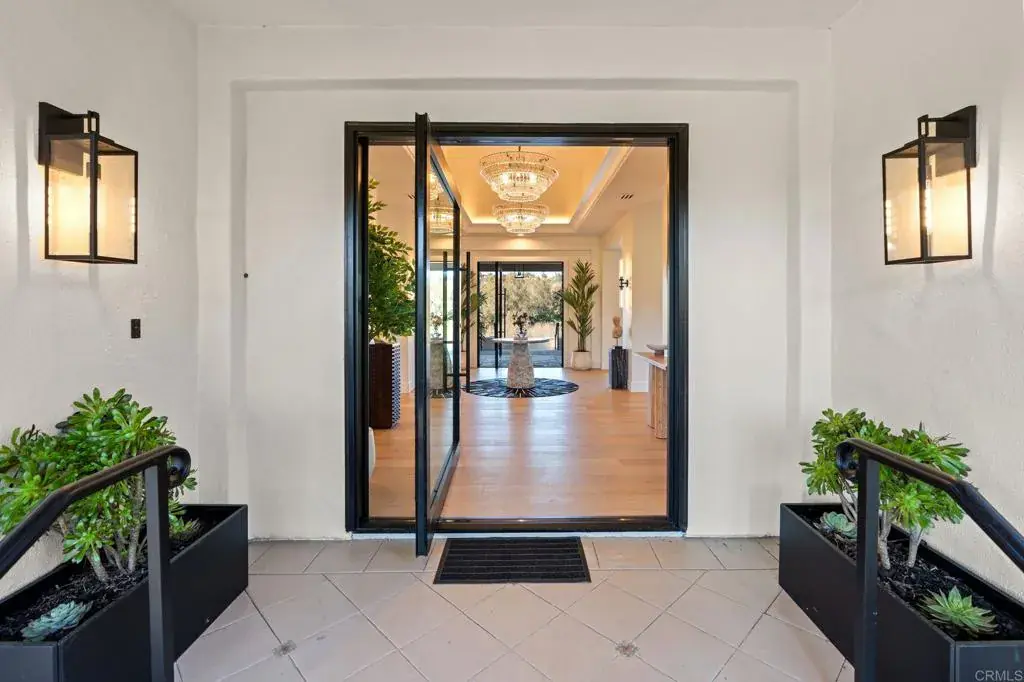 Located in the exclusive gated community of South Pointe Farms, this fully reimagined single-level modern estate captures western exposure, gentle ocean breezes, and sweeping views that set a serene tone throughout the home. Grand dual pivot doors open to wide-plank oak flooring, custom-beamed ceilings, designer lighting, and natural stone finishes that create a warm, elevated atmosphere from the moment you arrive. The chef’s kitchen features Sub-Zero and Viking appliances, a statement Mont Blanc quartzite island, and custom cabinetry, all flowing effortlessly into the great room and out through expansive multi-slide doors to the resort-style backyard. A dedicated theater room, refined home office, integrated sound system, LED ambient lighting, and brand-new framed art TVs make everyday living both simple and enjoyable. In addition, the fully-owned 76-panel 21kW solar system with two Tesla Powerwalls is a great asset providing significant energy cost savings. The primary suite offers a private retreat with direct outdoor access, a spa-like bath with marble shower and smart toilet, and an oversized walk-in closet. Each additional bathroom is finished with the same meticulous attention to detail. Outside, the newly rebuilt pool features natural-stone coping, PebbleTec finish, fresh plaster, and LED lighting. The outdoors include a pergola-covered living room, built-in BBQ, linear fireplace, and two custom water fountains, creating a true resort experience at home. Five indoor/outdoor fireplaces and new professional landscaping complete the setting. The property includes acreage that extends into the creek riverbed—a natural preserve filled with native plants, palms, and wildlife. This turn-key estate invites you to move in and immediately enjoy the best of Rancho Santa Fe living!