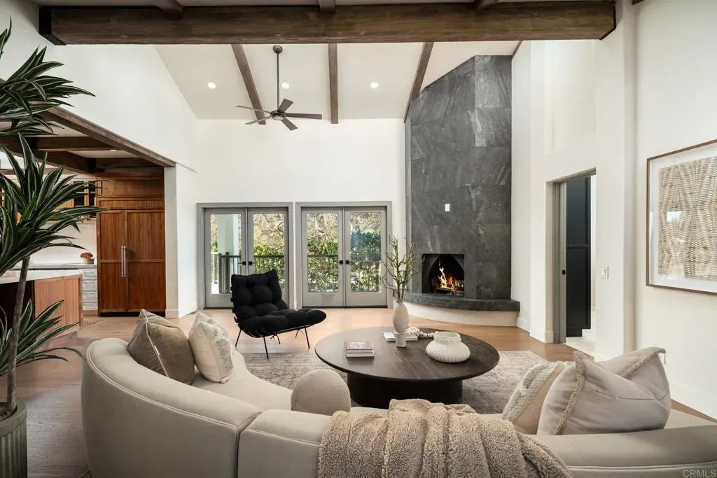 Positioned in the heart of Rancho Santa Fe’s historic Covenant, 6449 Las Colinas stands as a refined Spanish Modern estate—where timeless architecture is reimagined for today’s lifestyle. Recently renovated from the main residence to the guest house, every space showcases a balance of classic design and contemporary sophistication. A circular drive introduces the home with a graceful arrival, highlighting smooth white stucco walls, espresso-framed windows, and mature landscaping. Inside, natural light pours through expansive windows and sliding doors, accentuating European oak floors, custom cabinetry, and open-beamed ceilings that lend warmth and character. The chef’s kitchen is the centerpiece, appointed with Wolf and Sub-Zero appliances, an oversized island, and effortless connection to the dining and living spaces—ideal for both entertaining and day-to-day living. Multiple fireplaces, curated finishes, and seamless indoor-outdoor flow elevate the atmosphere throughout. Resort-style amenities define the grounds, with a private pool, full-size tennis court, and a detached guest house offering luxurious accommodations for visitors or extended stays. Every element has been thoughtfully designed to maximize comfort, privacy, and connection to the outdoors. The primary suite is a private retreat with vaulted ceilings, spa-inspired bath, and direct access to the backyard sanctuary. Designer lighting, high-end fixtures, and a versatile floor plan complete the home’s elevated living experience. As part of The Covenant, residents enjoy direct access to miles of equestrian trails, the Rancho Santa Fe Golf Club (social membership included others require separate membership(s)), award-winning Roger Rowe School, and the community’s unmatched lifestyle—without the restrictions of a gated enclave. A rare offering where historic Spanish charm and modern refinement meet in one of Southern California’s most coveted addresses.
