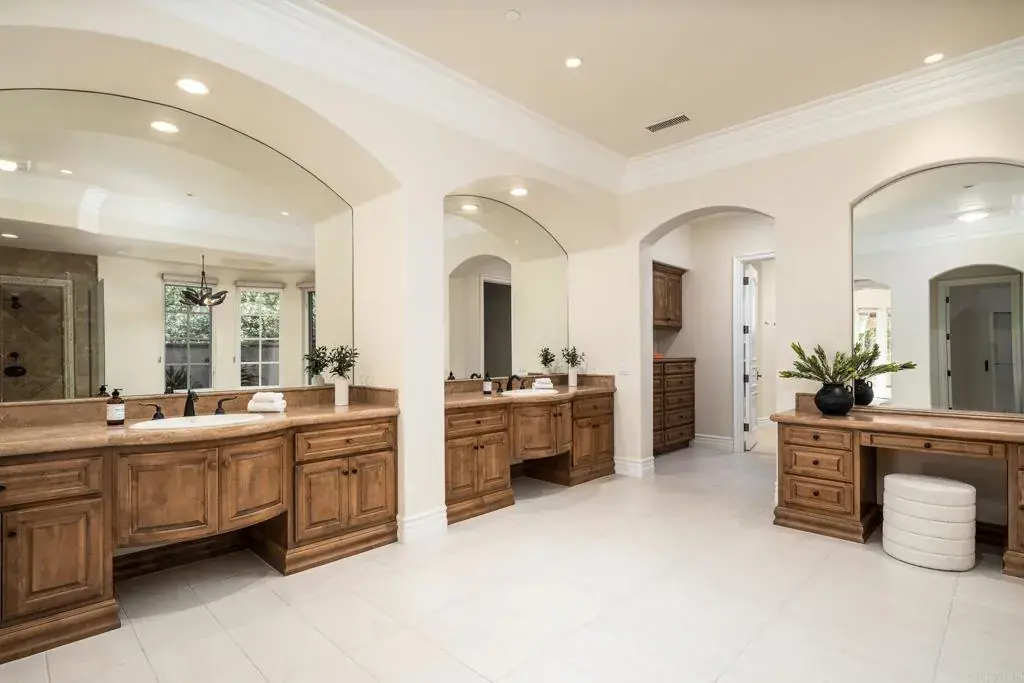 Nestled within the prestigious guard-gated community of The Bridges in Rancho Santa Fe, 6627 Calle Ponte Bella is a masterpiece of timeless elegance and unparalleled craftsmanship. This estate is more than just a home—it’s a lifestyle. From the moment you arrive, the lush landscaping and grand presence set the stage for what lies beyond. Step inside to discover an expansive interior that seamlessly blends old-world charm with modern luxury. Soaring ceilings, intricate woodwork, and arched doorways create a warm yet stately ambiance. The gourmet kitchen is a chef’s dream, featuring top-of-the-line appliances, custom cabinetry, and a spacious center island perfect for entertaining. The living spaces are equally impressive, with natural light pouring through oversized windows, framing stunning views of rolling hills and meticulously manicured grounds. The primary suite is a private retreat, offering a spa-like bathroom and walk-in closets that rival a boutique. Each additional bedroom includes en-suite accommodations, ensuring comfort and privacy for family and guests alike. Outside, the magic continues—a resort-style pool and spa, outdoor kitchen, and multiple seating areas provide the perfect backdrop for alfresco dining, sunset cocktails, or simply soaking in the serenity of your surroundings. With impeccable design, a prime location, and unmatched lifestyle offerings, 6627 Calle Ponte Bella is not just a home—it’s an experience waiting to be lived.