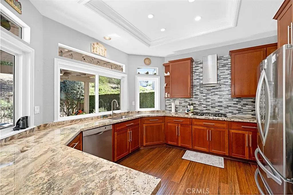 Beautifully updated 4-bedroom, 3-bath home offers 2,439 sq ft of flexible Southern California living. Improvements include a remodeled kitchen, updated bathrooms, master closet remodel, crown molding, replaced windows, bamboo flooring . Additional features include a whole house fan, gutter system, insulated metal garage door, upgraded lighting. Solar power contract installed in 2023. (not a lease)