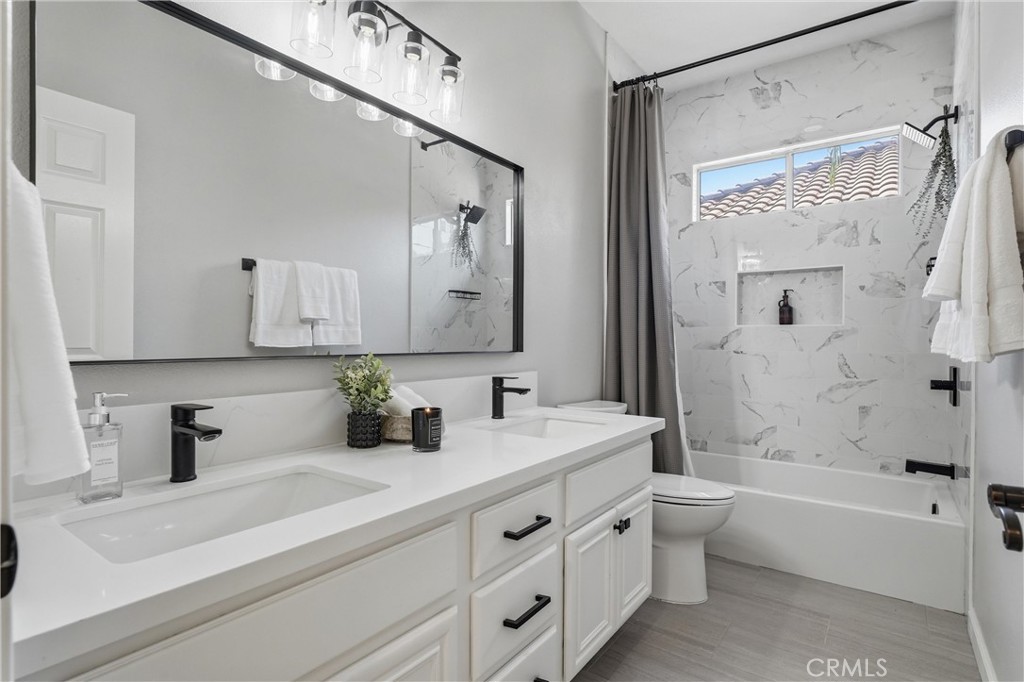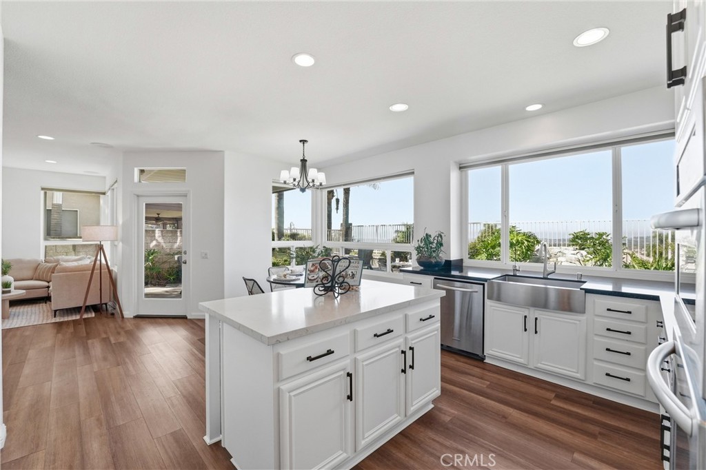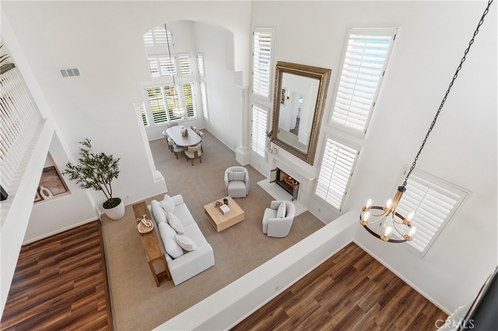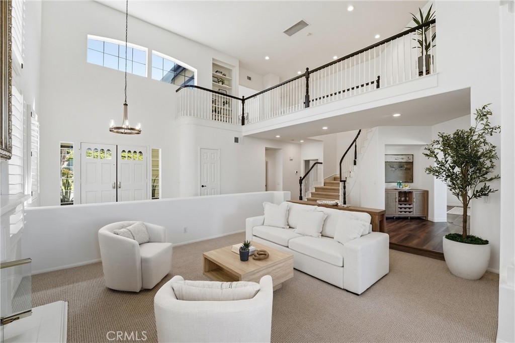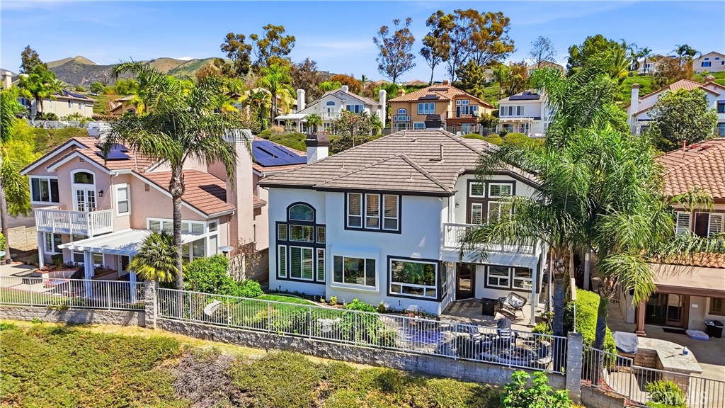 Welcome to your destination home in the gated community of Walden in Trabuco Canyon where breathtaking views, thoughtful design & everyday comfort come together in perfect harmony. This beautifully updated contemporary residence offers a highly desirable open floor plan. A grand double-door entry past a sparkling water feature welcomes you, setting the tone for effortless lifestyle awaiting inside. Step into the light-filled living & dining rooms w/ soaring vaulted ceilings – a dramatic yet inviting atmosphere. The living room features an elegant fireplace while formal dining room windows frame panoramic west-facing views of rolling hills, spectacular sunsets, where nature’s brush paints breathtaking vistas each evening. The remodeled kitchen is the heart of the home, thoughtfully designed with modern finishes & seamless flow into the family room—perfect for gatherings large or small. Ideal for multi-generational living, the first floor includes a private bedroom with its own en-suite newly redesigned bathroom, offering comfort & flexibility for guests or extended family, in addition to an upgraded guest powder room & a spacious laundry room. Upstairs, your airy primary suite is a true retreat featuring its own fireplace, panoramic views, en-suite bathroom with a new step-in shower, as well as a soaking tub adjacent to the fireplace. Additional bedrooms & bonus room (currently an office) provide plenty of space for family, work, or hobbies. Hallway bathroom is a freshly redesigned space w/ a brand new shower & dual vanity w/ new light fixtures. Recent improvements include owned solar, flooring, dual-pane windows & fresh interior & exterior paint. Step outside to your easy-to-maintain backyard oasis, where a covered patio & a tranquil waterfall create the perfect setting for relaxing or entertaining while enjoying the dreamy panoramic views. The soothing sounds of winds caressing palm fronds feed your spirit. Additional highlights include a 3-car garage & access to a tranquil community pool and spa, a picturesque catch-and-release fishing pond, and beautiful natural surroundings. Walden is conveniently located near award-winning schools, major employment centers & shopping, dining & entertainment; nearby hiking & biking trails nurture your adventurous spirit. Rarely does a property combine scenic beauty, modern updates & versatility in such an exceptional setting. Come experience the lifestyle … this is more than a home, it’s a destination!