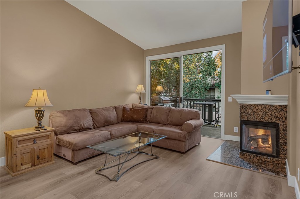 As you walk in, you’re immediately greeted by a sense of warmth and intention. The home opens gracefully, revealing newly installed luxury vinyl plank flooring, craftsman-style baseboards, and contemporary shaker doors that set a refined, modern tone throughout the 971-square-foot space. Natural light draws you into the living area, where a cozy fireplace creates the perfect backdrop for quiet evenings, while sliding doors lead to your private balcony- an ideal spot to start your morning or unwind at the end of the day.