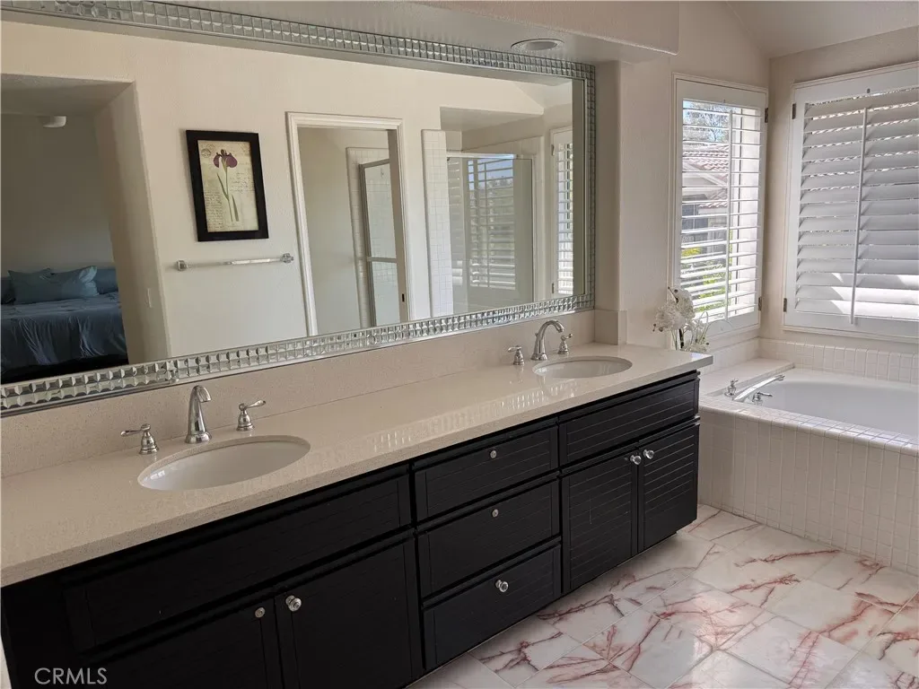 Welcome to 147 Encantado Canyon located in the desirable Belterraza Community of Rancho Santa Margarita. Rarely offered 3 spacious bedrooms and 2.5 bathrooms, 1,743 square feet Home with Coveted 2 Car Driveway. Upon entry you are greeted by an expansive formal living room and dining room with soaring two story vaulted ceilings with stunning skylight. Beautifully appointed kitchen features quarts counter tops, stainless steel appliances and white cabinets. Living Area on entry level is adorned with warm wood plank tile complemented by plantations shutters. The primary suite features a lavish en-suite bathroom and custom closet organizer. Home has NEW REPIPE PEX-A PIPE. NEW WINDOWS (75%), NEW LENNOX HVAC/ AC CONDENSER, NEW KITCHEN AID APPLIANCES Steps from Tijeras Creek Golf Club and the sparkling community pool and spa. Walking distance to St. Junipero Serra Catholic School, Arroyo Vista Elementary and park. Enjoy all that the city of Rancho Santa Margarita Association (SAMLARC) has to offer including the Lago Santa Margarita and Beach Club lagoon, four pools, 13 parks and hiking trails.