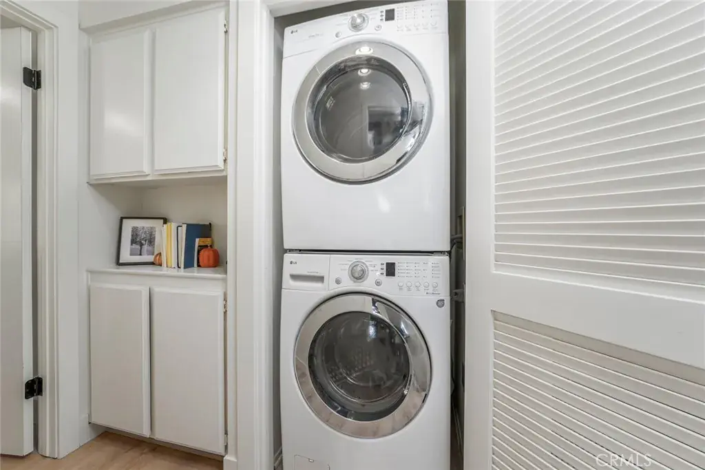 Additional highlights include an in-unit stackable washer and dryer, a detached one-car garage with opener, 2nd parking spot is a covered carport, and access to the community pool, spa, and recreation area.