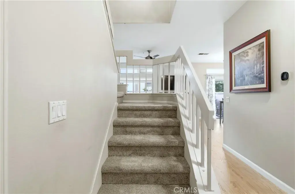According to SafeWise, welcome to the safest city in all of California; Rancho Santa Margarita. The Cabo Vista Tract of homes is located in the highly sought after section of town known as Melinda Heights. Enjoy neighborhood amenities that include a pool, spa and clubhouse. City wide opportunities include the carefully planned SAMLARC features such as pools, pickleball courts, tennis courts, picnic areas, playgrounds, softball fields, hiking trails, biking trails and membership to the Lago Santa Margarita Beach Club with its massive swimming area. Award winning schools and access to nearby toll roads are all included. This particular home has plenty of natural light, employs the popular great room concept, has no one living above or below and a direct access garage. Textured ceilings, bull-nosed corners, Decor Plugs/Switches, raised panel doors, brand new carpeting, brand new luxury vinyl flooring and oversized baseboards are featured throughout. The renovated kitchen has granite counters/backsplash and stainless steel appliances including the dishwasher, the stove/oven, barn style sink, microwave and faucet. The handy breakfast bar will make casual meals a snap, or you can use the convenient nook area off the kitchen with its ample storage. Both upstairs bedrooms have their own self-contained bath. The primary suite has a walk in closet, dual sinks, a walk in shower and a privacy door to the commode area. Both bedrooms have mirrored closet doors. The rear patio is perfect for firing up the bar-b-q, relaxing or entertaining. When I asked the owners what they most enjoyed about their home, I was told they appreciated the peace and quiet, how friendly the neighbors were and how safe they felt. Those are exceptional qualities for any home in any price range.