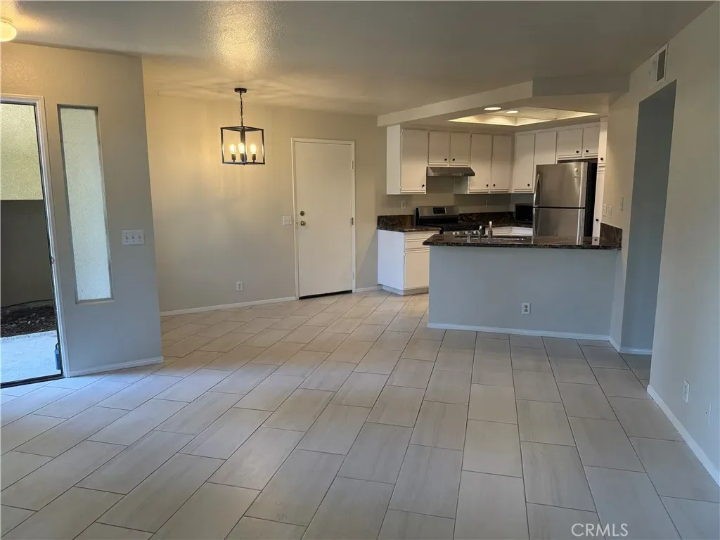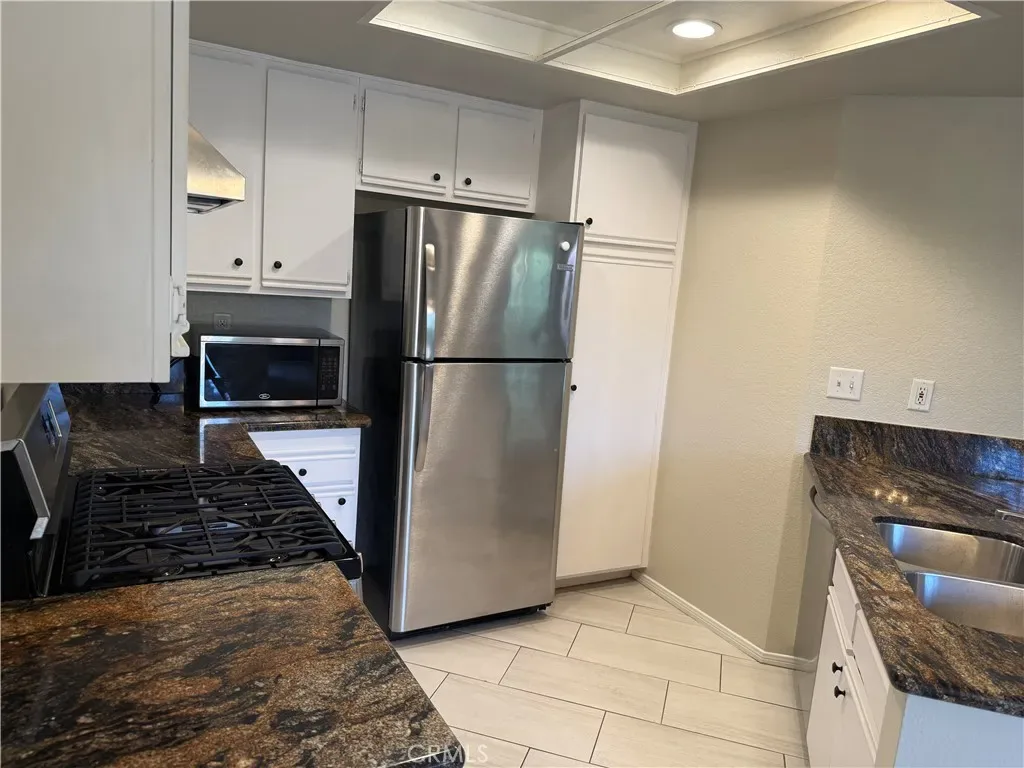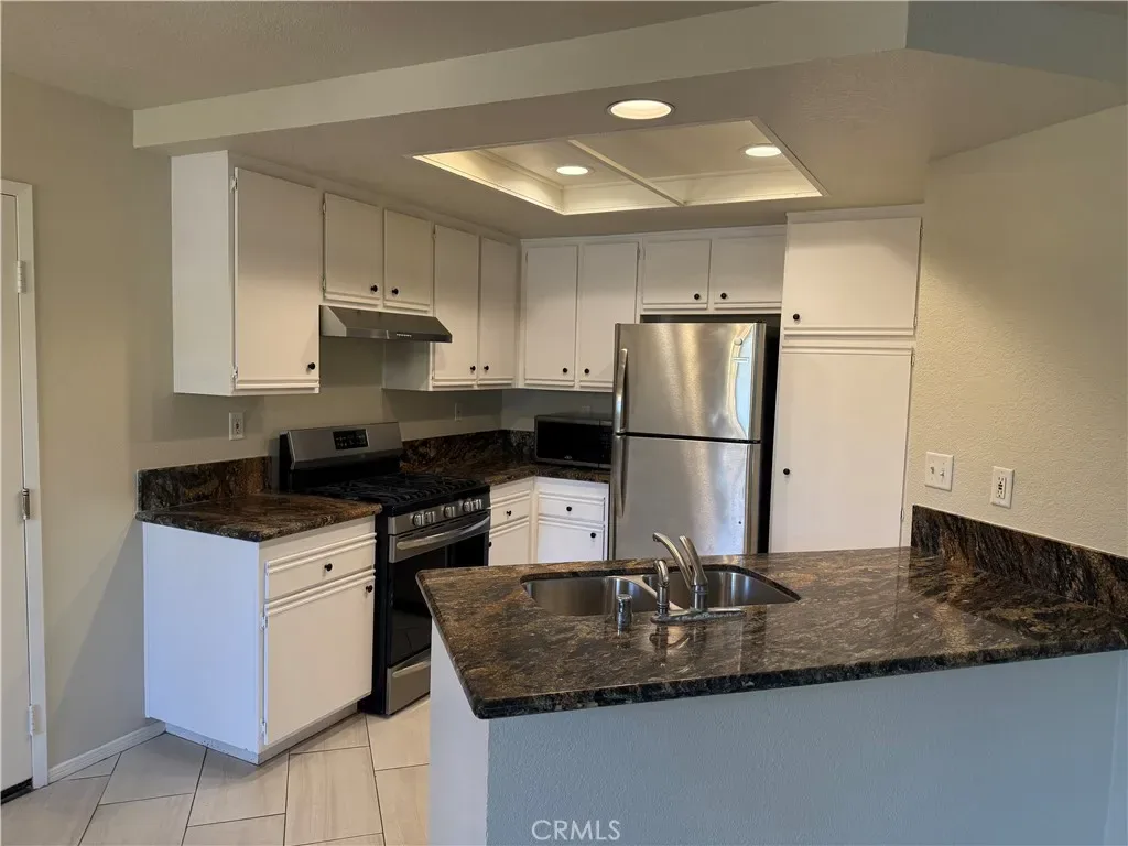 Private 2 bedroom/ 2 bath lower end unit with a wrap around patio. Living room is light, has a fireplace and opens out to the patio. The kitchen has granite counter tops and lots of cabinets for storage. Neutral tile floors throughout with carpet in the bedrooms. Inside laundry area includes washer and dryer. Attached oversized garage.