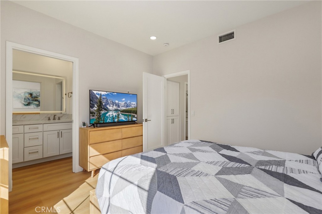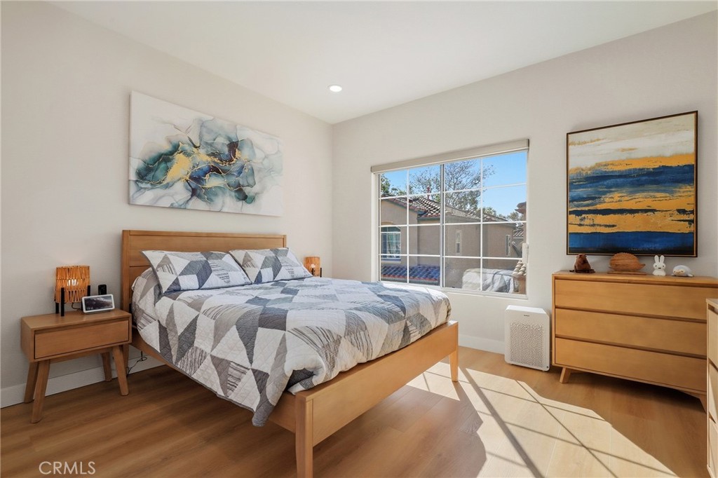 No detail has been spared in this beautifully updated detached 2-bedroom, 2.5-bath home in the sought-after Los Abanicos community of Rancho Santa Margarita. Thoughtfully refreshed throughout with luxury wide plank vinyl flooring, fresh interior paint, recessed LED lighting, and abundant natural light. The updated kitchen features white cabinetry, quartz countertops with full-height backsplash, brand-new stainless steel appliances, and a garden window overlooking the private backyard. Open living and dining areas flow seamlessly outdoors, with a convenient half bath on the main level. Upstairs, the primary suite offers a spa-inspired bathroom with a stone surround walk-in shower, dual quartz vanities, walk-in closet, and a Kohler electronic smart toilet with integrated bidet. A secondary full bathroom with soaking tub is located just outside the second bedroom. Additional highlights include new custom zebra window shades, direct-access two-car garage with epoxy floors and side-by-side laundry, low HOA dues, low Mello-Roos, and access to Rancho Santa Margarita’s pools, Beach Club and Lagoon, parks, trails, and recreational amenities. Conveniently located near shopping, dining, toll roads, and top-rated schools, this move-in-ready home offers the perfect blend of comfort and convenience. Don’t miss your chance to call this beautifully upgraded home yours—schedule a tour today and experience the best of RSM living.