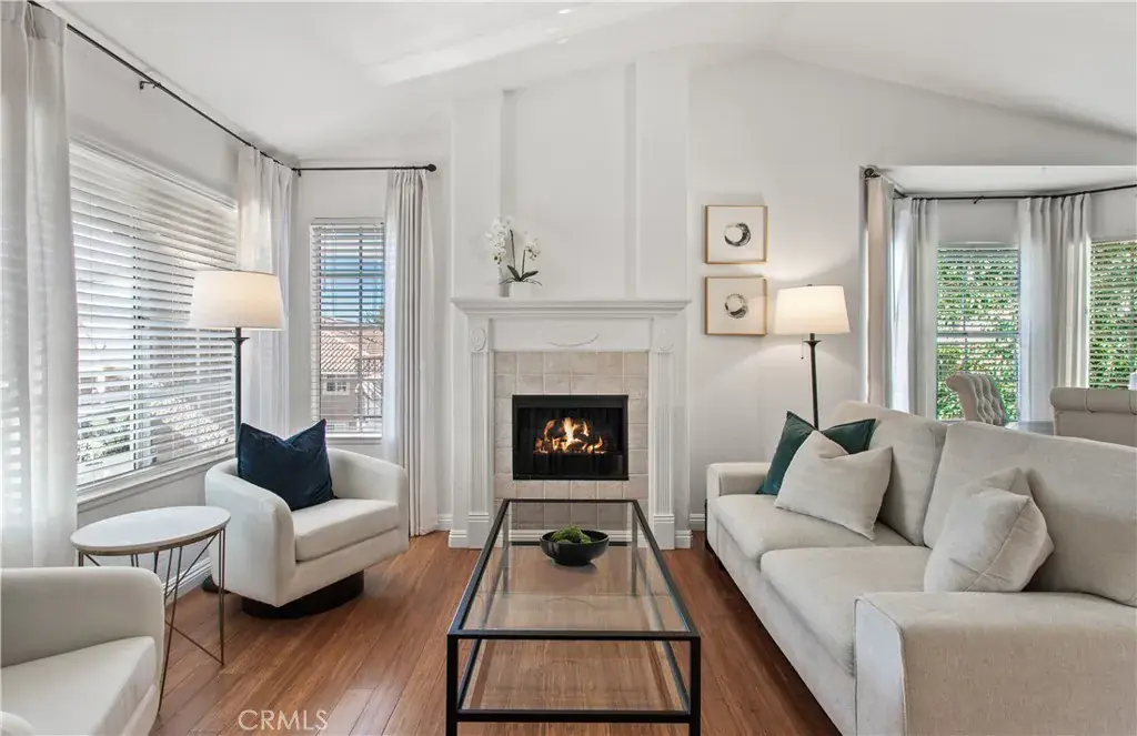 This desirable corner, upper-level carriage unit sits directly above the garage and offers 2 bedrooms, and 2 full bathrooms with a bright open layout. Enjoy the spacious private balcony that opens to the living area, highlighted by vaulted ceilings and a cozy gas fireplace with a custom mantle- creating an inviting space for everyday living.