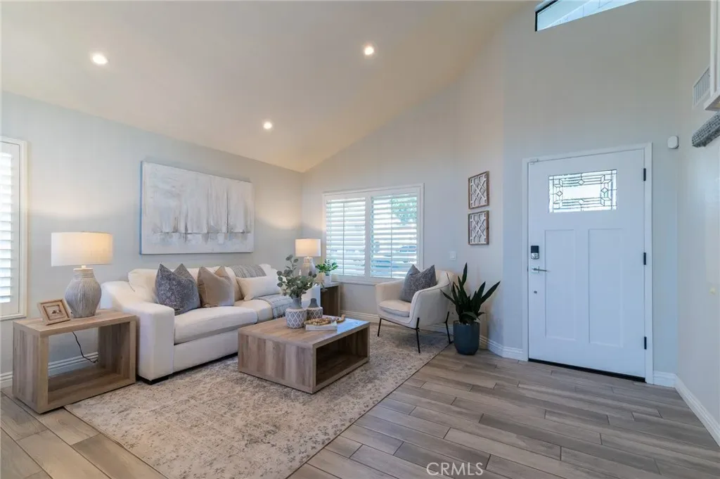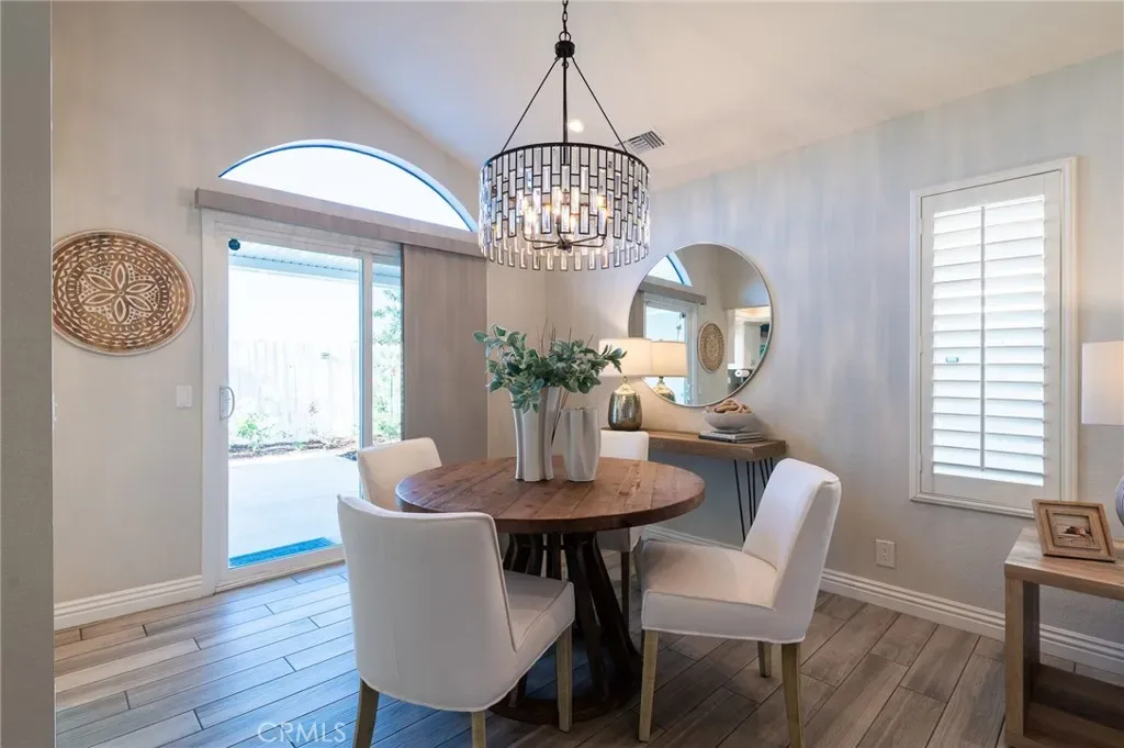 Welcome to this beautifully upgraded 4-bedroom, 3-bath home in the heart of Rancho Santa Margarita. The living room and dining room feature a vaulted ceiling, recessed lighting, plantation shutters, and a stunning chandelier, creating an inviting space for both everyday living and entertaining. Wood-look tile flooring flows throughout the main level. The updated kitchen offers white mission-style cabinetry, beautiful countertops, a farmhouse sink, and stainless steel appliances including a 5-burner KitchenAid range and Bosch dishwasher. It opens to the inviting family room with a fireplace, ceiling fan, and recessed lighting. The downstairs bath has been tastefully upgraded with matching mission-style cabinetry and finishes. Upstairs, the spacious primary suite features a vaulted ceiling, ceiling fan, and a bright, open feel, along with a beautifully upgraded primary bath showcasing a dual vanity, glass-enclosed shower, and a walk-in closet. The upper level also includes three additional bedrooms and an upgraded guest bath, offering comfortable space and flexibility for family, guests, or a home office. Enjoy the private backyard and side yard featuring an Alumawood patio cover with a ceiling fan and lighting, a storage shed, and beautifully landscaped grounds with vibrant color. Additional highlights include dual-pane vinyl windows and sliding doors, a newer water heater and FAU/AC system, PEX repiping, an alarm system, synthetic turf in the front yard for easy maintenance, and a 2-car attached garage with built-in cabinets and a dedicated laundry area. Residents enjoy Rancho Santa Margarita’s exceptional amenities, including pools, tennis courts, the Beach Club lagoon, scenic lake, parks, and year-round community events.