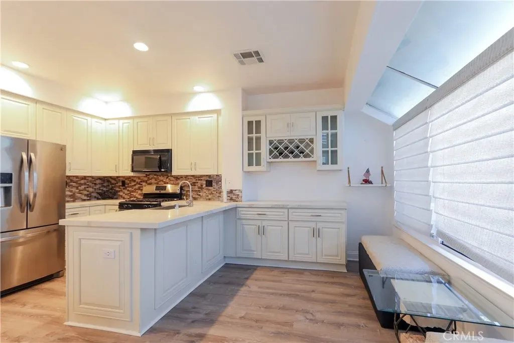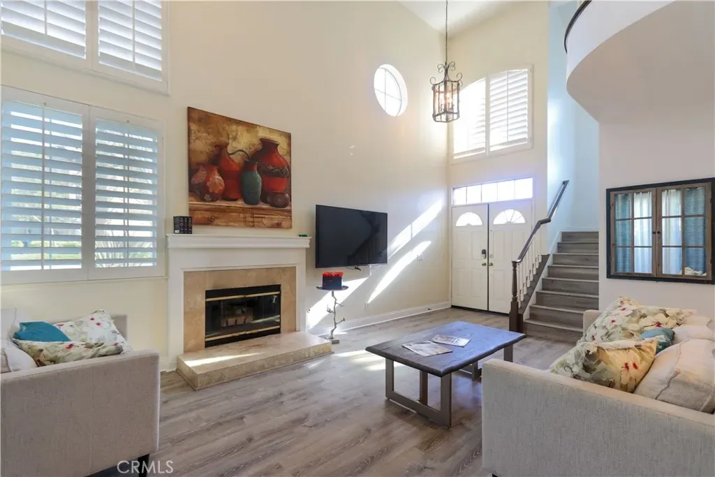 Located in the Serabrisa community of Rancho Santa Margarita near Tijeras Creek Golf Club, this end-unit townhome offers 3 bedrooms and 3 full bathrooms with only one shared wall. Double entry doors lead to a living room with vaulted ceilings and large windows that provide natural light. The home features new flooring throughout. The kitchen includes Corian countertops, stainless steel appliances, recessed lighting, and ample cabinet space. The kitchen opens to the dining area and family room with a fireplace and access to a private patio. The main level includes one bedroom and one full bathroom. Upstairs offers two-bedroom suites with ceiling fans and dual vanities. Additional features include plantation shutters, built-in storage, and garage storage with cabinets and ceiling racks. The property includes a one-car attached garage, private driveway, one assigned parking space, and nearby guest parking. Community amenities include pools, parks, lake access, tennis courts, trails, shopping, dining, and convenient access to toll roads. Included is full access to the Lago Santa Margarita Beach Club. Close to Arroyo Vista School.