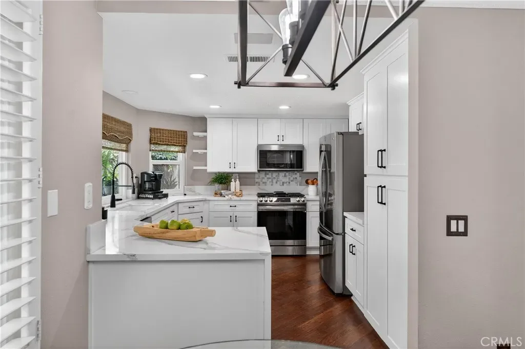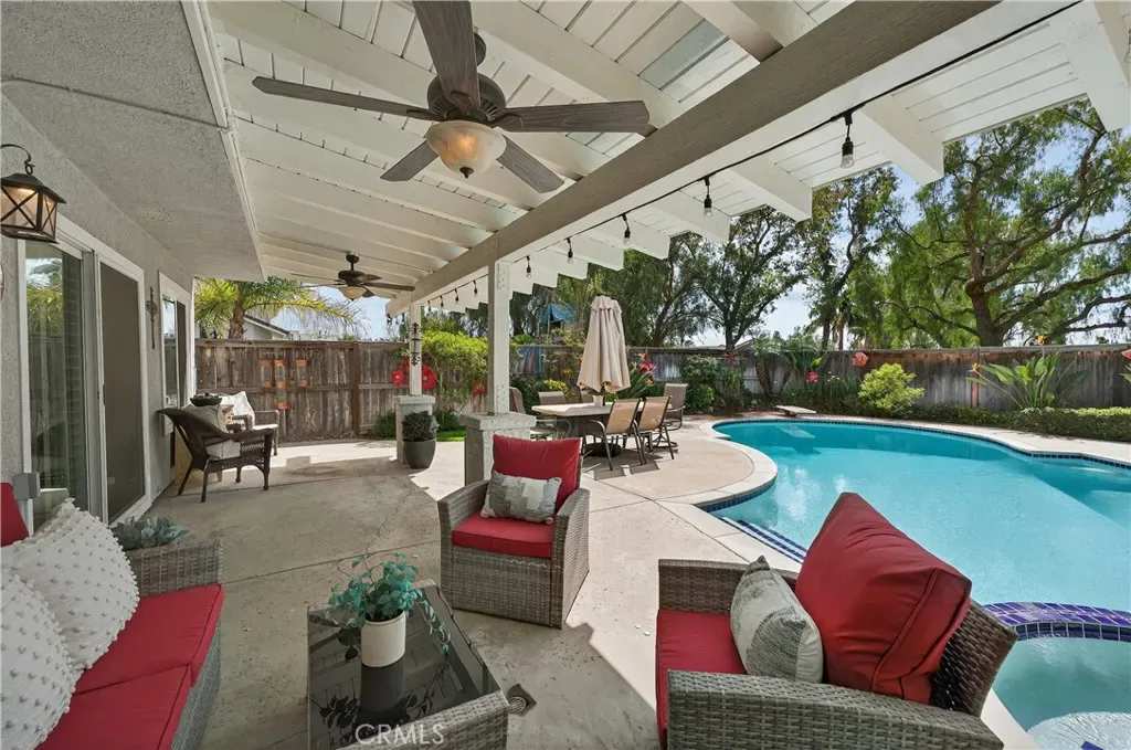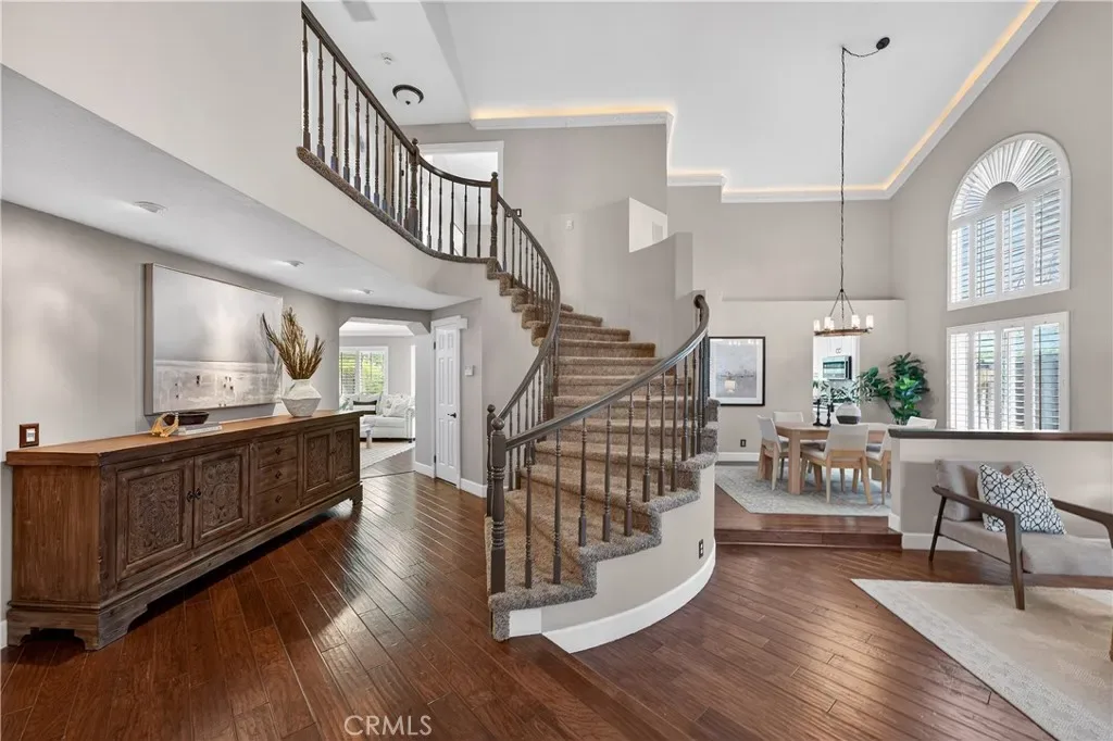 Tucked away at the end of a quiet cul-de-sac in the highly desirable community of Robinson Ranch, this beautifully upgraded home offers the perfect blend of privacy, space, and lifestyle. Thoughtfully renovated from top to bottom, this move-in-ready residence showcases hardwood flooring downstairs, fresh interior and exterior paint (including banister and beams), 5” baseboards throughout, new windows, and recessed lighting in the kitchen, office, entry and family room. The living room features elegant plaster crown molding and uplighting, while a built-in office and custom closet built-ins add both function and style. The fully remodeled kitchen shines as the heart of the home, complemented by a new A/C and heater, solar, rain gutters, and extensive upgrades throughout. Bathrooms have been tastefully refreshed, including a new master vanity and a beautifully remodled secondary bath. Step outside to enjoy landscape lighting in the front and back, along with a sparkling pool featuring new plaster, tile, and equipment—perfect for relaxing or entertaining year-round. Living in Robinson Ranch means access to award-winning schools, resort-style pools, parks, tennis and pickleball courts, and miles of scenic trails. Just minutes away is Rancho Santa Margarita, known for its top-rated restaurants, vibrant community events, and welcoming small-town charm. Commuters will appreciate easy access to California State Route 241, offering a convenient drive to the Irvine Spectrum Center and the beautiful beaches of Southern California.