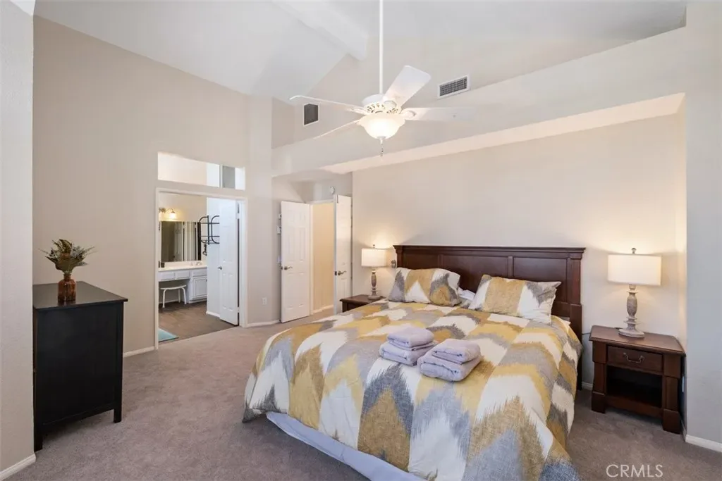 Available June 13, 2026! FURNISHED RENTAL. This home features expansive living areas and a flow-through living/dining area. The spacious eat-in kitchen has been entirely modernized and is equipped with state-of-the-art equipment, an electric oven and a spacious pantry. The enormous primary bedroom is an oasis of solitude and relaxation, with a luxurious ensuite and a walk-in closet. The main bathroom, which was recently refurbished, is modern and well-equipped with a shower, soaking tub, his-and-her basins, and ceramic-tiled flooring. The downstairs bedroom with double doors and a neighboring full bath is ideal for office or in-law quarters, and there is new carpet throughout. The spacious backyard provides a tranquil sanctuary where you may truly unwind. It is located in the magnificent Robinson Ranch neighborhood, which is bordered by the surrounding Saddleback Mountains. Amazing views from the front and back of the house. The direct access 3 car garage includes an EV car charger outlet installed. Walk to the super association’s facilities, which include a pool and a spa. Prepare yourself for love at first sight. Rate varies base on term and season.