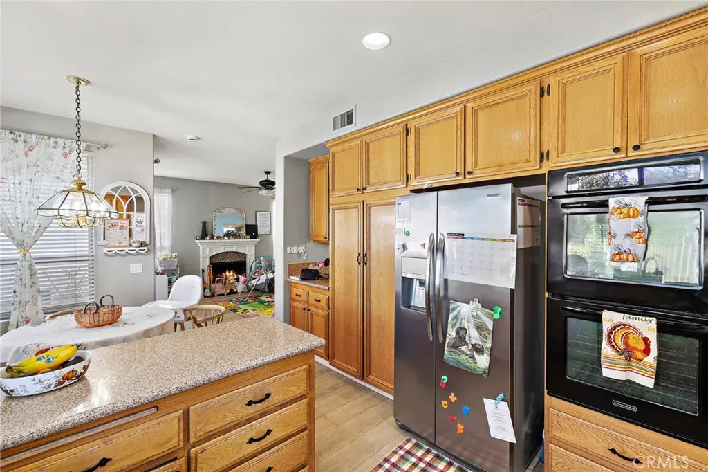 Inside, you’ll find soaring ceilings, formal living and dining rooms, and an open floor plan designed for comfort and entertaining. The kitchen is equipped with stone countertops, double oven, dishwasher, and ample cabinetry, flowing seamlessly into the cozy family room with fireplace. All bedrooms are located upstairs, including a spacious primary suite.