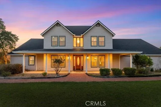 Welcome to this custom-built, one-owner home nestled on 7+ rolling acres of privacy and space. This nearly 3,200sqft two-story home offers 4 bedrooms plus an office (or use all 5 as bedrooms), 4 bathrooms, and primary suites on both levels. Downstairs primary suite includes a cozy fireplace, separate garden tub and shower, dual sinks, and a spacious walk-in closet for ultimate comfort. The spacious kitchen features a restaurant-style stove, formal dining room, and breakfast nook, perfect for the culinary enthusiasts. Enjoy the large laundry room with built-in desk, storage cabinets, and a fold-down ironing board—designed for convenience. Home is wired with CAT5for modern connectivity and includes a Transfer Switch kit for future generator backup power or off grid power capability. A 480+ sq ft bonus room offers potential for a future ADU or use as a hobby room, private gym, game room or guest space. Outside, enjoy the oversized 3-car garage, covered front and back porches, expansive 2-tier back deck for entertaining, garden area, and room for all your toys. Finished with durable Hardie board siding, this home blends luxury and functionality in a peaceful country setting.