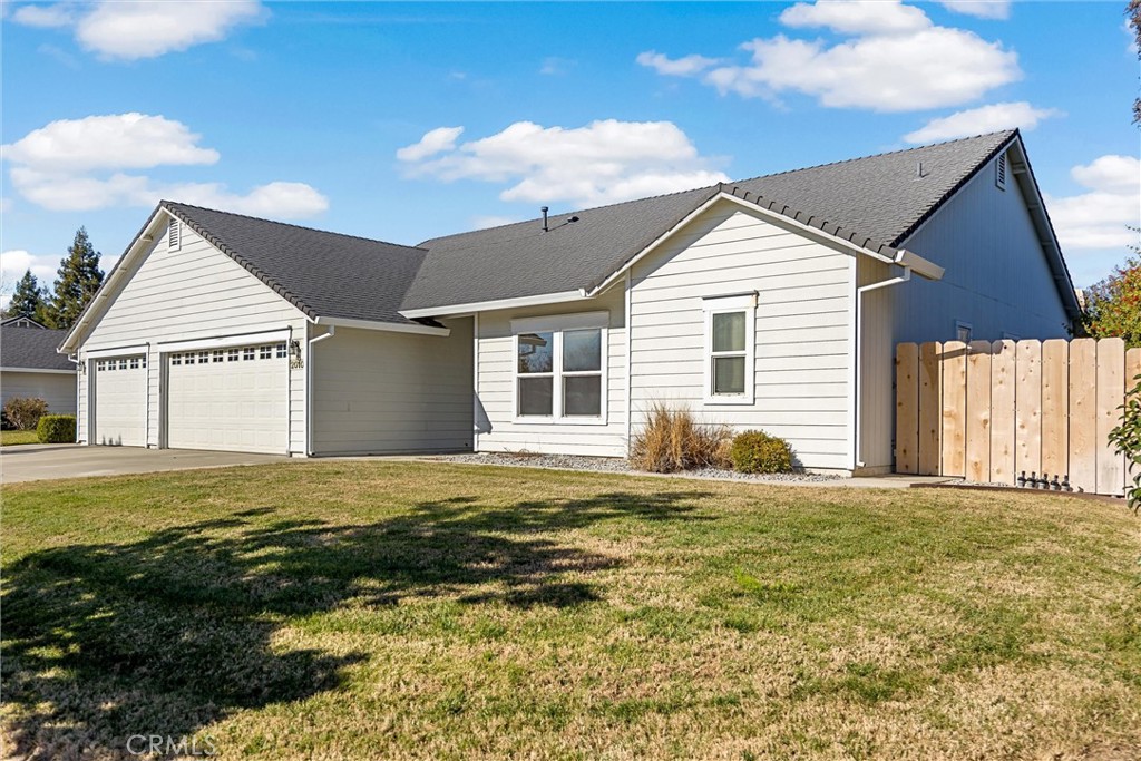 This beautiful 2003-built home offers 3 bedrooms, 2 full bathrooms, and a spacious 3-car garage in a desirable edge-of-town location close to schools and shopping. Enjoy a bright, open floor plan with high ceilings, ceiling fans, newer laminate flooring, and abundant storage throughout. The primary suite features a garden tub, walk-in shower, and a large walk-in closet. The kitchen includes oak cabinetry, a gas range/oven, microwave, and breakfast bar—perfect for everyday living and entertaining. Additional highlights include dual vanity sinks in both bathrooms, an indoor laundry room, parking on side of house, a wide driveway apron, and plenty of off-street parking. Fully landscaped front and backyards with automatic sprinklers, a fenced backyard, and an easy-maintenance patio. This home is complete, neat, tidy, and truly move-in-ready.