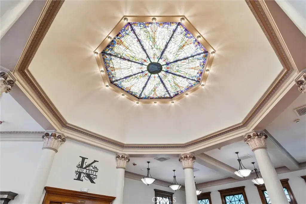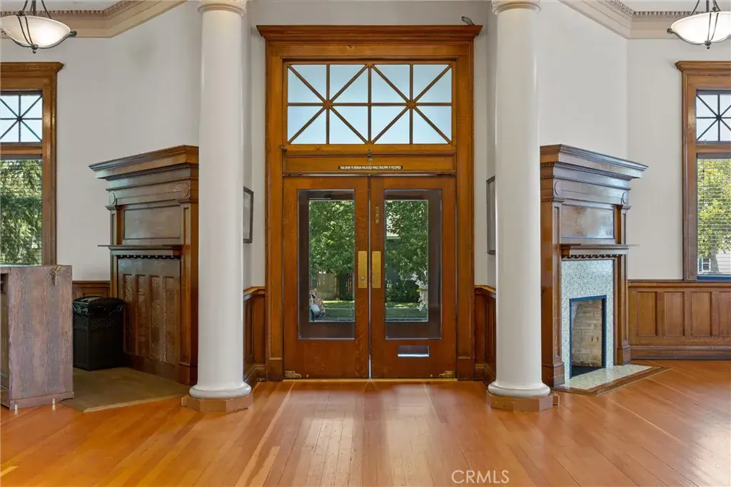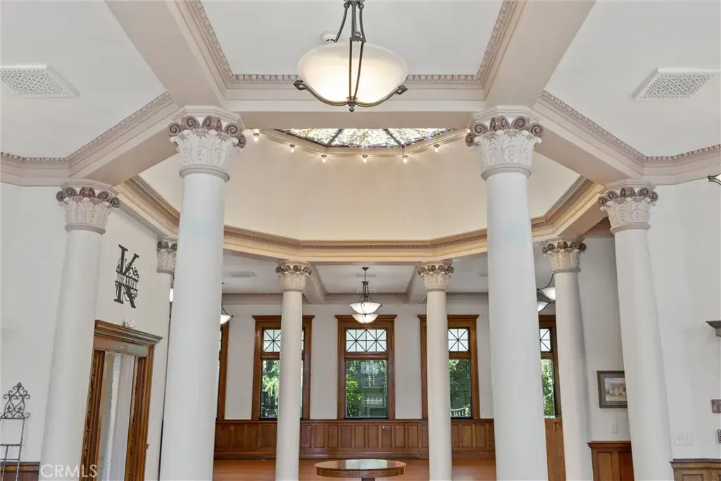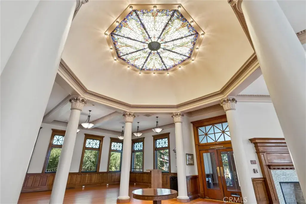 Visitors are greeted by an impressive grand staircase that sets the tone for the extraordinary design throughout. Gorgeous pillars and sophisticated crown molding showcase meticulous craftsmanship. The space is adorned with resplendent windows that allow natural light to flood in. The warmth of Douglas Fir flooring and the intricately carved stone details stand as a testament to the exceptional artistry of renowned architect Franklin Pierce Burnham, who envisioned this remarkable project from inception.