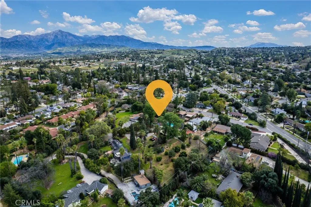 A single-story ranch-style estate nestled on 1.4 acres of sprawling gardenscape—your own private park in South Redlands. Enjoy stunning sunset and mountain views with a direct sightline to the Redlands “R.” A private road leads to a gated circular driveway that, along with two garages and an RV space, significantly expands parking. The house has been newly painted! Inside, find warm wood tones and spacious living areas that flow seamlessly. The kitchen is equipped with ample cabinet space and high-end Viking stainless steel appliances, including a professional-grade six-burner stove and a refrigerator. Your primary bedroom features an ensuite bath and patio access via a sliding door. Includes a recently installed high-efficiency HVAC system and solar panels for significant energy savings! What’s more, the home is wired for a generator (generator included at buyer’s request), which can power the fridge, lights, and outlets in case of an outage. In the peace and solitude of your private sanctuary, discover an organic orchard of fruit trees, including six grapefruit trees, navel & valencia oranges, blood orange, meyer lemon, key lime, kumquat, Santa Ana plum, nectoplum, Double Delight nectarine, Red Baron peach, pomegranate, pineapple guava, and quince. Your personal garden also boasts culinary herbs and numerous planting beds and terraces. The backyard offers even more places to relax and unwind throughout the season, whether you want to cozy up around the fire pit or under the misting system, find zen-like tranquility by the koi pond, or cannonball into a large in-ground pool. Several bird species frequent the grounds. Zoned for horses. Within walking distance of beautiful Prospect Park. Part of the highly-rated Redlands Unified School District.