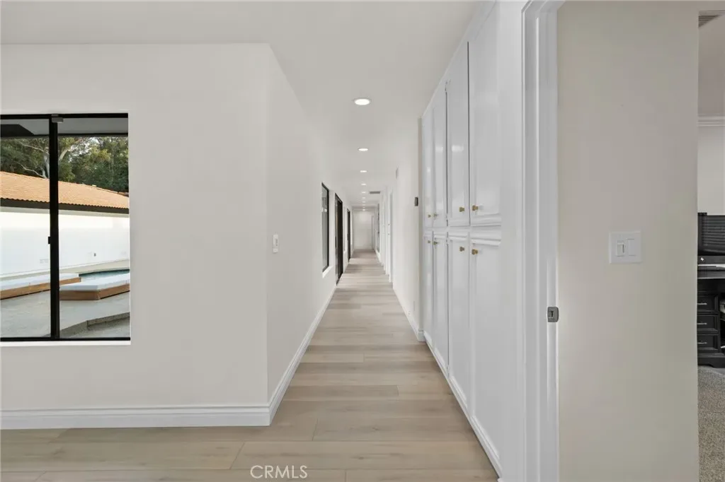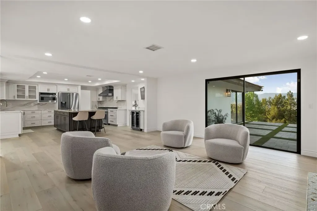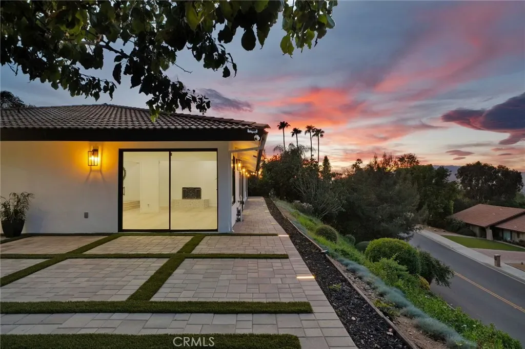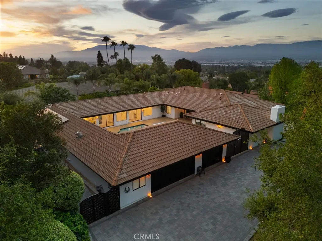 Tucked along in one of the most desirable areas of Smiley Heights in South Redlands. Prestigious tree-lined neighborhood with terrific curb appeal. This hilltop corner home is a rare masterpiece, offering stunning views. This Beautiful Contemporary Residence has charm and elegance. Recently renovated from top-to-bottom. Arrive in style on stunningly crafted, brand-new paver driveway that perfectly frames the home’s exterior of the home along with new lighting and smooth finished walls throughout the exterior/interior of home creating a clean tranquil canvas. Enter into a private gated courtyard, you are greeted by a shimmering, centrally located sparkling new pebble finish pool. This isn’t just a home-it’s a private sanctuary with an Indoor/Outdoor flow. The open-concept floor plan utilizes sliding glass doors allowing the living, and kitchen areas to blend in effortlessly with central pool. Along side with completely renovated barbeque area, with lattice cover patio, concrete counter top with polish finish, smooth stucco finish with BBQ grill 42″, with 2 side burners, sink, new exhaust fan for BBQ, new recess lighting and spot lighting. Step through the double-door entry into an airy, light-filled foyer, natural light atmospheres and panoramic, scenic views. Greeted by high ceilings and a sweeping open floor plan designed for both comfort and entertainment. This fully renovated, move-in-ready home boast a modern, top-to-bottom transformation, featuring a stunning new chef’s kitchen featuring quartzite countertops, all new cabinetry, huge island ideal setting for those family gatherings. Top tier stainless steel appliance with an 8 burner stove. Kitchen also features lounge area with an oversized custom fireplace. Walk-in pantry. High-end luxury wide plank flooring through out the home, plush carpeting in all 4 bedrooms. Master bedroom suite features a fireplace, walk-in closet built in drawers along with master bathroom has a display case (a woman’s dream). 5 Bathrooms are modernized with new tiling, vanity, LED/anti fog mirrors and fixtures. Fresh paint and recessed lighting through-out the home. 5th Bedroom currently being used as retreat room with built-in sauna. Huge laundry room, Large area for all your linen, lots of storage space. Home also has tankless water heater, new HVAC, electrical, plumbing, and water softener system. Two car garage with new sleek garage doors lots of storage. Tesla Charger, and Solar Panels. A MUST SEEHOME.