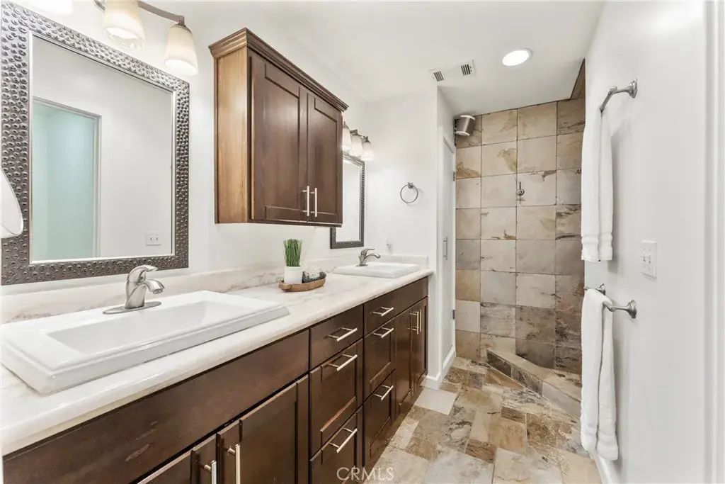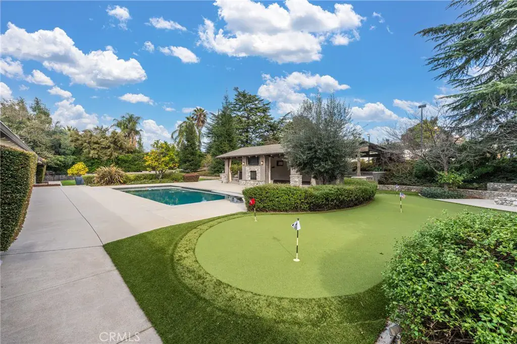It’s not just a house, it’s an all-inclusive resort. This sprawling single story on 1+ acre lot is fully landscaped and loaded with luxurious amenities! You and your family will enjoy swimming, soaking in the jacuzzi, relaxing in the sauna, taking a brisk cold plunge, playing beach volleyball, basketball, or tennis, perfecting your game on the putting green, roasting marshmallows over the firepit, cooking in your outdoor gourmet kitchen, or simply unwinding in the poolside cabana with its fireplace and media system. This completely updated home has been meticulously designed and decorated, both inside and out. The interior and cabana were repainted in 2026. In the kitchen, discover Caesarstone quartz countertops, updated subway tile & faucet, and top-of-the-line appliances. Plenty of built-in features throughout, including a wet bar with custom cabinetry, a Sub-Zero wine fridge and beverage fridge, and a marble countertop. Your primary suite features a walk-in closet, an ensuite bath, and an adjoining office with direct patio access. With the addition of a separate exercise room, along with your resort-style backyard retreat, this estate is designed for both active lifestyles and supreme relaxation. A sprawling garden includes raised beds, three varietals of grape vines, and several fruit trees, including pear, Meyer lemon, Eureka lemon, avocado, mandarin, grapefruit, and Valencia orange. Updated WiFi Nest thermostats and security cameras. Owned solar with 50 panels. Electric car chargers in your garage. Additional space for RV parking. Schedule your private showing!