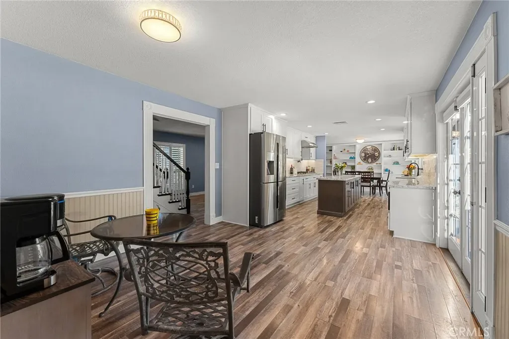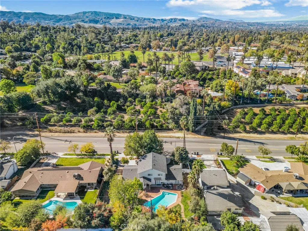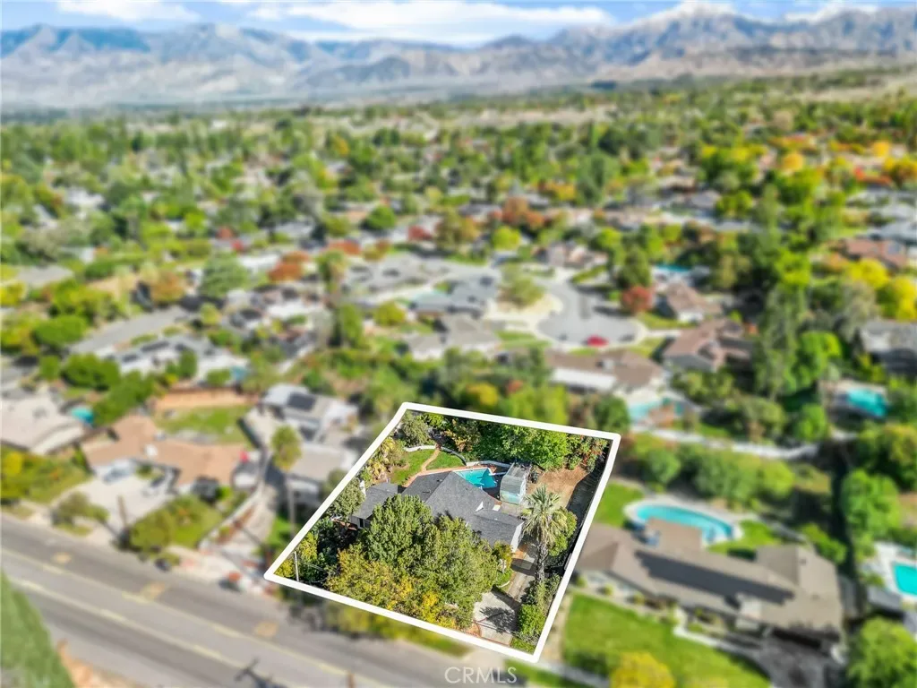Welcome to this move-in ready Colonial-style pool home located in the highly desirable Upper South Redlands neighborhood, just walking distance to Redlands Country Club and Prospect Park. Set on a rare .34-acre lot, this 5-bedroom, 3-bathroom home offers mountain views, city light views, and a private resort-style backyard—perfect for entertaining or relaxing in total privacy. The expansive backyard oasis features a 28,000-gallon swimming pool with upgraded VFD pump, diving board, multiple lounge areas, and an elevated fire pit ideal for sunset and stargazing evenings. Mature landscaping provides peaceful greenery, while the property is enhanced by a brick entry, paved driveways, a 12-foot automatic gated entrance with battery backup, and a mix of wrought iron, vinyl, and wood fencing. Inside, enjoy 2,208 sq ft of beautifully remodeled living space with five spacious bedrooms, including a main-level primary suite, and three updated bathrooms. This home features newer dual-pane windows, plantation shutters, custom casing and molding, fresh interior paint, and 100% waterproof and fireproof luxury vinyl plank flooring throughout. The chef’s kitchen is a true showstopper with soft-close shaker cabinetry, high-end granite countertops, subway tile backsplash, LED lighting, and premium stainless steel appliances. Highlights include a 5-burner high-heat cooktop with 50,000 BTU super-burner, double convection ovens, oversized microwave, pot filler, wine refrigerator, dishwasher, and Bluetooth-enabled features—perfect for home chefs and entertainers alike. Additional living spaces include a formal living room with wood-burning fireplace, spacious family room, formal dining area, and a breakfast nook with dual French doors opening to the backyard for seamless indoor-outdoor living. Major system upgrades include a new 30-year roof with solar conduit pathway, gigabit high-speed internet, new smart water meter, upgraded main water line and regulator, and expanded electrical panels with future capacity. The 503 sq ft oversized 2-car garage/workshop offers exceptional utility with three 220V/50A outlets and five 20A circuits, making it ideal for EV charging, RV hookups, or a home workshop. This no HOA, centrally located Redlands home offers privacy, space, upgrades, and location—a rare combination in today’s market. Don’t miss this exceptional opportunity to own one of Redlands’ most sought-after homes.