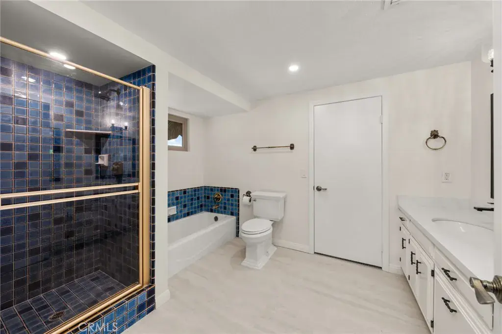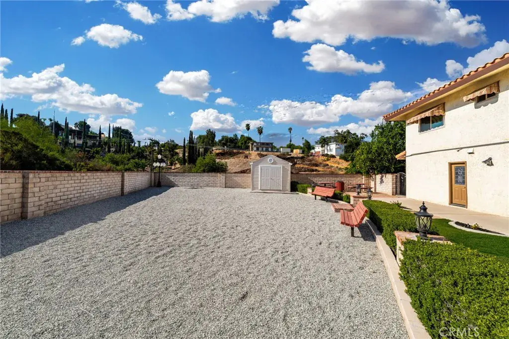 South Redlands five bedroom pool home with an attached seven car garage, detached 3200 square foot garage, and over 5500 square feet of living space on a nearly 50K square foot lot – just a chip away from the green at Redlands Country Club hole six! When you approach the home, you are greeted by a sizable circular driveway at the top of the private street that is Country Club Lane. You enter the home into the formal front foyer, which features the first staircase and vaulted ceilings. This well lit space displays stained glass pieces from local artist, Tom Medlicott. The entry is flanked by two living areas, a formal living room and a family room with an exposed beam ceiling; both of which feature large fireplaces. The family room, which has a direct access into the attached seven car garage (fully finished with tile flooring and a built in air compressor), opens up into the game room. That flows right into the center of the home, where you’ll find a full sized wet bar and a second set of stairs. This space at the center of the home opens up to the second story interior balcony. Opposite the game room is a formal dining area, with direct access into the kitchen. It’s generous layout features tremendous counter space, two dishwashers, a double oven, gas cooktop, wine fridge, prep sink, and plenty of storage. There is also an eat in dining area with a slider leading out into the back yard. Windows and doors throughout the home have been upgraded. Off of the kitchen, you’ll find a large laundry room with additional counter space, a separate sink, more cabinets, and a small built in office area. Heading outside, the pool and spa with a glass mosaic finish serve as the centerpiece of the yard, which also has a gas fire-pit and low maintenance landscaping features. Five bedrooms are upstairs, including the primary suite. A newly renovated bathroom features a sizable dual vanity with a make up counter, a soaking tub, walk in shower, and a separate toilet room. The other bathrooms have been recently upgraded as well with new counters, fixtures, flooring, and lighting. There is a private office space off of the primary bedroom. Heading back outside, the exterior garage space is as impressive as the home. One of the largest private garages in Redlands, this is perfect for your car collection, the ultimate home gym or workshop, multiple class A RVs, or all of the above. Excellent Redlands Schools.