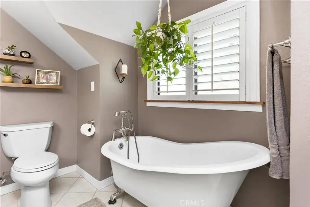 Upstairs, all three bedrooms are generously sized with ample storage. The primary suite features a private bath highlighted by a vintage clawfoot tub, creating a peaceful, spa-like setting. An additional upstairs guest bathroom is conveniently located near the secondary bedroom or office space.