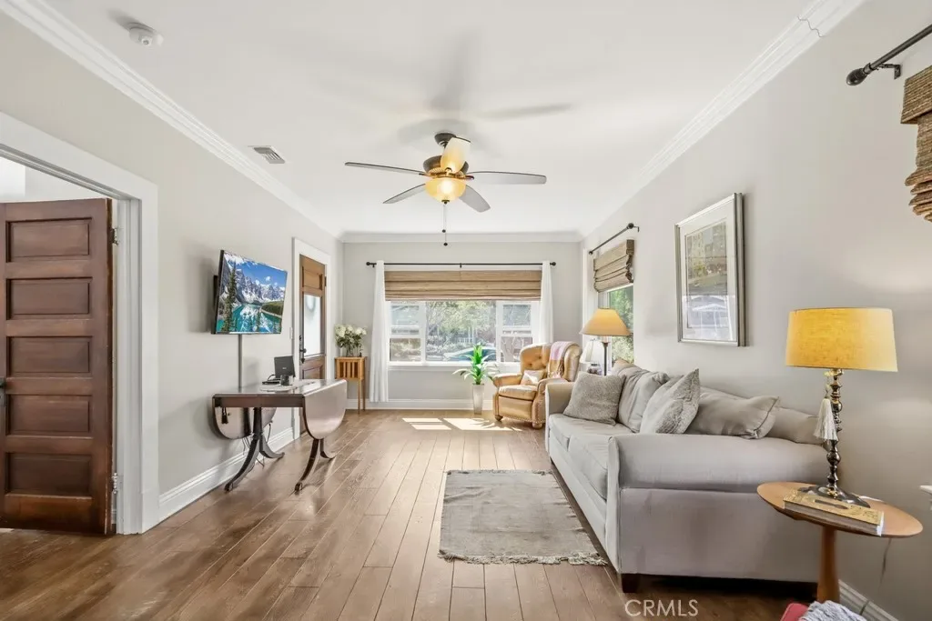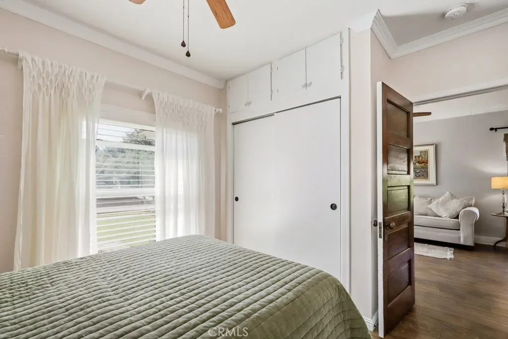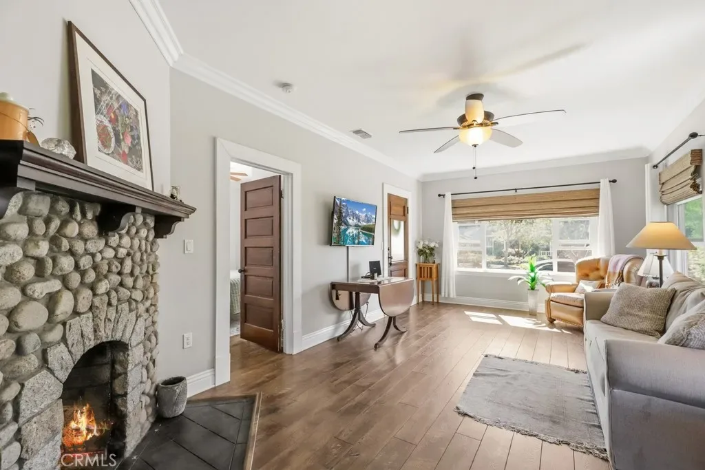 This beautifully renovated gem blends timeless character with modern upgrades. The designer kitchen is a true showstopper, featuring two-tone custom white shaker cabinetry, a sophisticated mix of butcher block and Quartz countertops, and premium KitchenAid appliances—including a range, microwave, and refrigerator—all complemented by elegant designer tile flooring. Step inside to experience the warmth and charm of original craftsmanship, highlighted by a statement wood-burning fireplace, rich original hardwood flooring, and classic crown molding that adds depth and character throughout. The thoughtfully designed layout includes a formal dining area and an inviting living room—perfect for morning coffee or relaxing evenings. The oversized laundry room offers abundant storage and includes a washer and dryer for added convenience. The spacious primary suite features dual closets, including a walk-in, and a fully updated ensuite bathroom with modern finishes. Secondary bedrooms are generously sized with ample closet space. Situated on a large lot, the backyard offers endless potential with a detached garage—ideal for an ADU, workshop, or additional living space. Additional upgrades include a new HVAC system, new windows, solar panels, and an updated electrical panel, providing comfort, efficiency, and peace of mind. Located just minutes from shopping, dining, and entertainment in vibrant Downtown Redlands, this home offers the perfect blend of historic charm and modern living. Schedule your private tour today—this one won’t last!