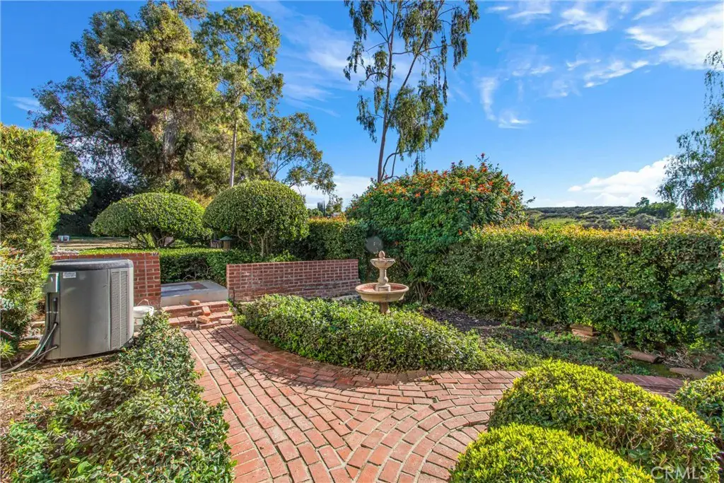 Up the winding staircase, the primary suite with a walk-in closet and three additional bedrooms all enjoy impressive scenic views. Outdoors, the expansive grounds are designed for both relaxation and entertaining, featuring a brick patio with a built-in barbecue, an outdoor gazebo, and mature landscaping. A thriving orchard with a variety of citrus and nut trees, along with additional garden space, enhances the estate’s abundance.