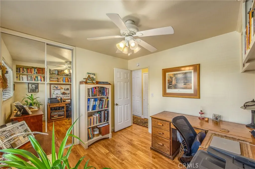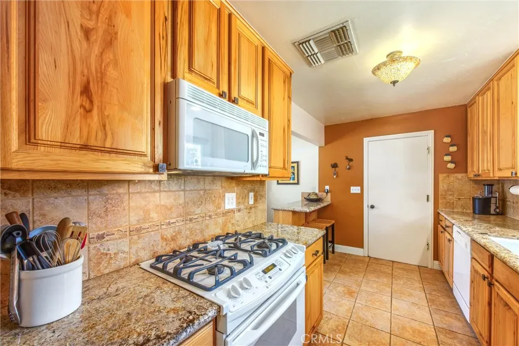 On a quiet cul-de-sac, you’ll find this charming three-bedroom home that blends thoughtful upgrades and inviting outdoor spaces. The beautifully updated kitchen features hickory cabinets, granite countertops, and a porcelain tile backsplash and flooring. A clever conversion of the entry closet adds valuable extra kitchen storage, while a peninsula creates a seamless connection to the living room—perfect for casual seating on the kitchen side and a built-in bookcase on the living room side. The living room is warm and welcoming, with new laminate flooring, a custom-tiled fireplace, retextured walls, and French doors that bring in natural light. Throughout the home, you’ll find vinyl double-pane windows for added efficiency and comfort. Major improvements provide peace of mind, including a new roof (2020), solar system (2022), water heater (2024), and energy-efficient HVAC system (2025). Both bathrooms feature new flooring, and the guest bath is enhanced with a glass block window and a Solatube skylight with exhaust fan for added light and ventilation. Custom built-in bookcases in third bedroom, attached at the ceiling so they don’t block your furniture. Step outside to a vibrant, thoughtfully landscaped yard filled with abundant flowers and a variety of drought-tolerant blooming plants, all maintained with automatic drip irrigation. The property also boasts a carport alongside the garage, topped with a pergola and secured with both pedestrian and vehicle gates. Mature trees—including fig, lemon, apricot, peach, pomegranate, ash, Chinese flame, Ash and birch—add beauty, shade, and a touch of orchard living to this special home. *Buyer to confirm schools*