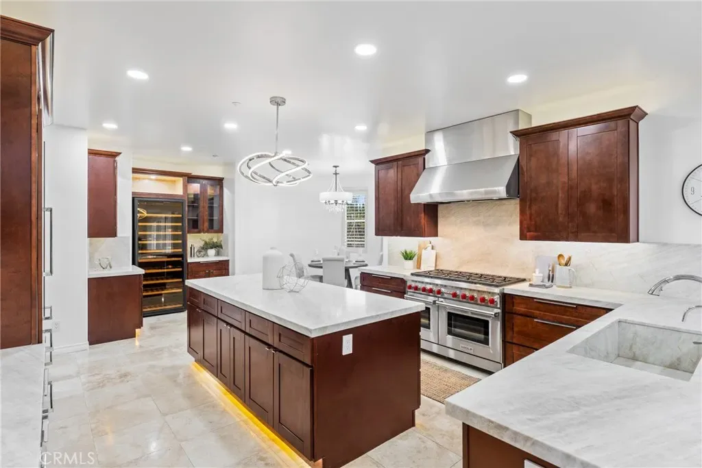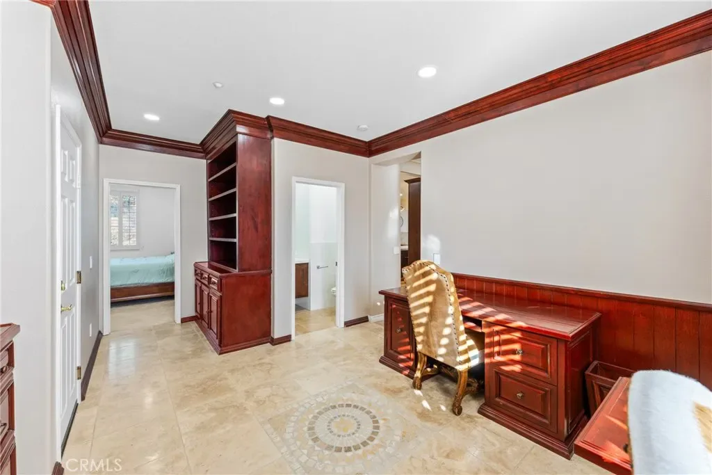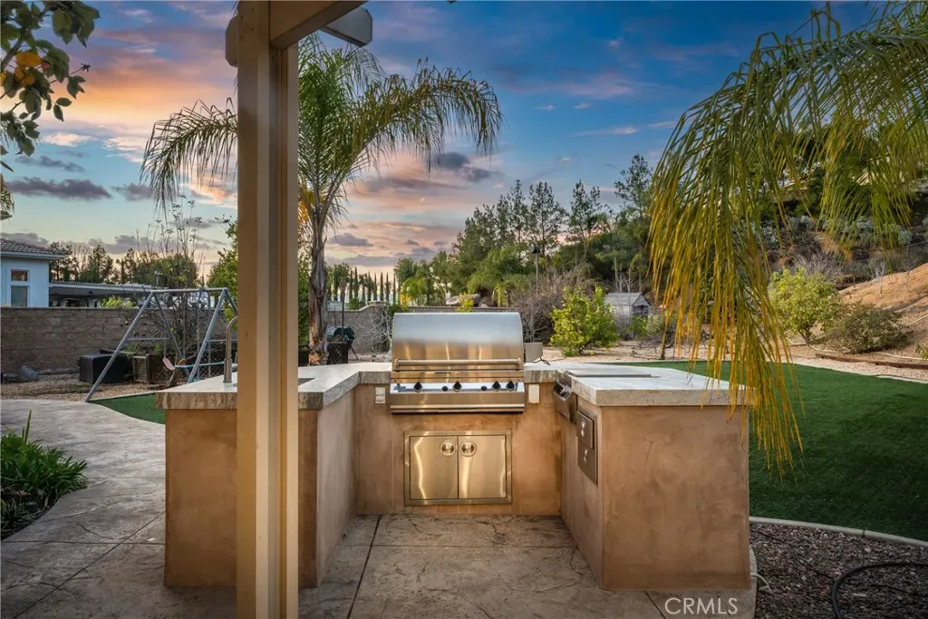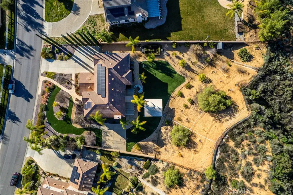 Total privacy and peace surround this charming home in a prestigious South Redlands neighborhood. This contemporary Spanish-style two-story has a comfortable and convenient layout that is perfect for families. Front and back all-season landscaping ensures a beautiful yard throughout the year. Walk through the stately front door and into a travertine-tiled entry. The space immediately opens up to reveal two-story ceilings, modern light fixtures, and a spacious living room. Luxury upgrades and high-end finishes are everywhere here. Flex your creative culinary skills in a spacious, modern kitchen with sturdy Taj Mahal Quartzite countertops and a huge island. Enjoy your own Wolf 8-burner range, a custom-built-in Sub-Zero fridge, and a large contemporary wine fridge from Wine Enthusiast. A huge office with wood built-ins opens up plenty of options for work-from-home or personal projects. Adjacent to the office is a convenient guest bedroom with an ensuite bathroom. Upstairs, the primary suite offers plenty of space and a second fireplace. The primary bath features a modern jacuzzi tub, walk-in shower, one of two bidets, an elegant vanity, and double sinks. And while every bedroom has its own walk-in closet, the walk-in primary closet is the pinnacle of luxury for the individual with sartorial taste. It sports floor-to-ceiling cedar lining that absorbs odors and helps protect your most treasured items from pests. Smart features in the home include a Nest thermostat and a Ring system. You also get a reverse osmosis and alkaline water softening system! The backyard offers recreation, a sports court, a covered gazebo lounge area, an outdoor kitchen and barbecue, and a sprawling garden of fruit trees. Watch the game on TV while lounging under the gazebo in front of an outdoor fireplace, while your barbecue chef prepares the gameday feast. Or cultivate your walkable garden of apple trees, pomegranates, avocado trees, and more! Paid solar with battery-storage credits. Historic Downtown Redlands, Caroline Park, and Redlands Country Club are just a short drive away. Hike the nearby Creekside Trail or Carriage Trail. Part of the highly-rated Redlands Unified School District.
