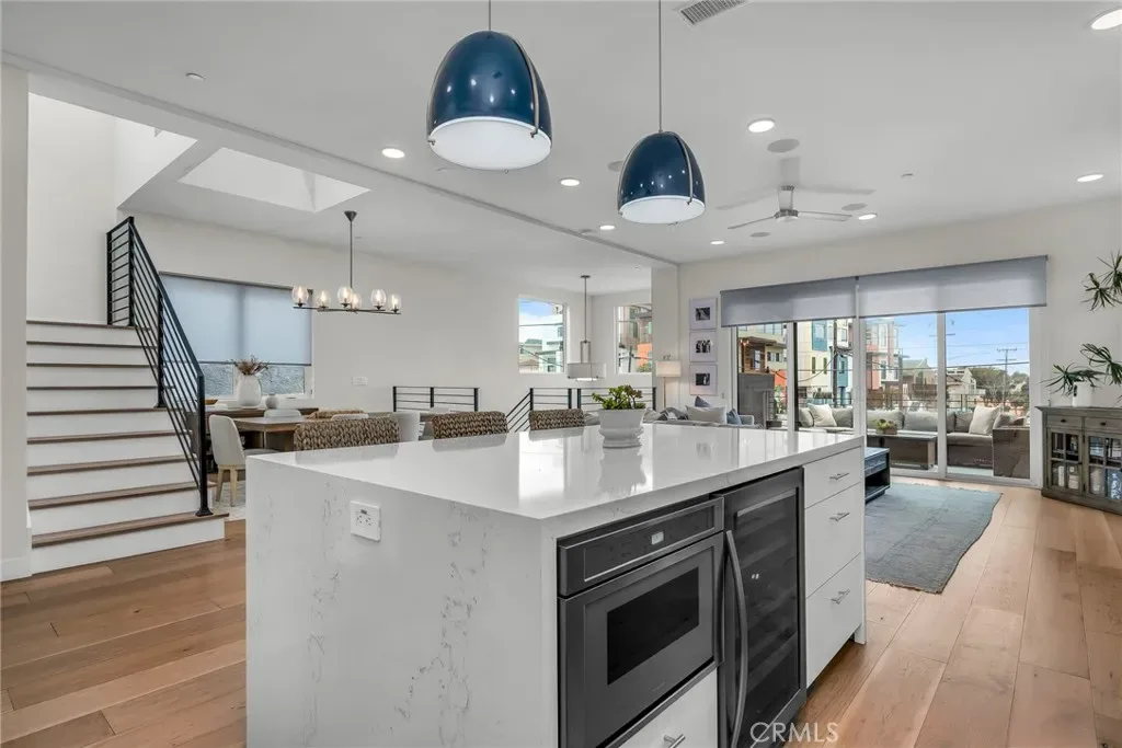 The stylish kitchen offers a center island with quartz countertops, Thermador oven/range, dishwasher, wine refrigerator, and microwave, ideal for both entertaining and everyday living. A loft with both ocean views and city views adds flexible space, and the primary suite with a custom walk in closet, serves as a private retreat with a spa-like bath, soaking tub, and walk-in steam shower.