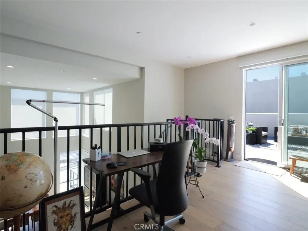 Home is at One South, a 52 unit complex finished in 2018. A social community in South Redondo this unit offers 2 Bedrooms, 2 Bathrooms + loft/office. Upon entry you are greeted with an open concept modern kitchen, 3 seater island with Bosch appliances and pull out drawers for efficient storage. The primary bedroom has a walk in closet and en-suite bathroom with jack and jill sinks. Both bedrooms have newly installed french oak wood floors to seamlessly match the living areas. The living and dining room draw your eyes up to towering 18 foot second story windows that let in an abundance of light. A spiral staircase continues the modern design to a loft upstairs that serves as an office or bonus room and opens up to a spacious private outdoor patio at around 600 square feet. The unit includes a washer in dryer in unit, 2 side by side parking spaces in a gated sub parking garage as well as an additional walk in storage unit. Community is gated with fob access and security cameras. Internet has been bundled into the HOA. Walking distance to Tulita elementary and El Retiro Park and a few minute drive to Riviera Village.