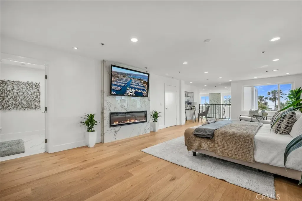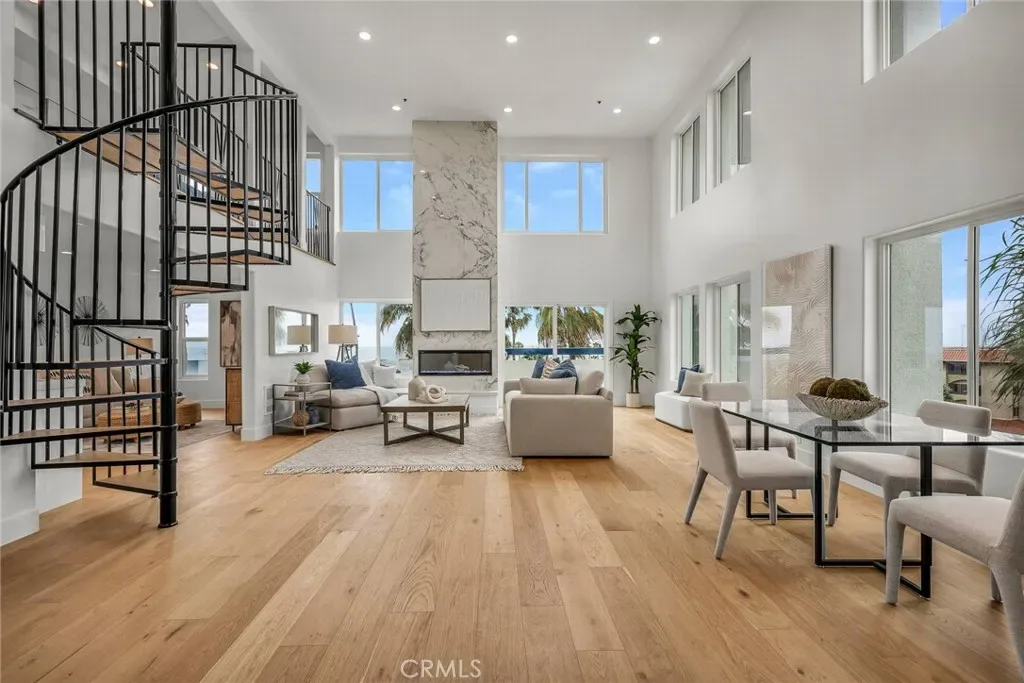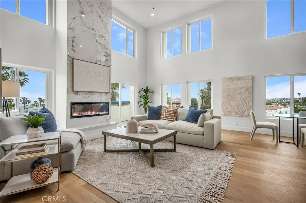 Rare ocean-view penthouse perched above the Pacific along the South Redondo coastline. Few residences offer this level of scale, light, and ocean presence presenting an extraordinary opportunity to own a truly distinctive penthouse along the South Bay coastline. Designed for those who appreciate architectural volume and refined coastal living, this exceptional top-floor residence delivers both sophistication and serenity just moments from the sand. Sunlight pours through the expansive interior, where soaring 18-foot ceilings and panoramic ocean vistas create a dramatic yet welcoming atmosphere. Wide-plank wood flooring and an open-concept layout provide effortless flow for both everyday living and elevated entertaining. The gourmet eat-in kitchen is thoughtfully curated with all-new appliances, custom cabinetry, sleek countertops, and an expansive island ideal for gathering. An adjoining flex space with a built-in bar and wine fridge transitions seamlessly into a formal dining area, media lounge, or game room. Anchoring the living space, a floor-to-ceiling stone LED fireplace introduces warmth while enhancing the home’s architectural presence. Two private balconies invite peaceful mornings and sunset evenings, while the expansive rooftop terrace sets the stage for unforgettable entertaining under the coastal sky, a true extension of the living experience. The primary suite serves as a luxurious private retreat, complete with dual spa-inspired bathrooms. A main-level guest bedroom with its own full bath provides ideal separation for visitors or multi-generational living, while the third bedroom features a walk-in closet and beautiful vistas. Additional highlights include custom lighting, integrated closet systems, and a full-size LG washer and dryer. Residents of Catalina Towers enjoy access to a fitness center, sauna, outdoor hot tub, gated garage with side-by-side parking, and additional storage. Perfectly positioned across from Veterans Park and the weekly farmers market, and just moments from Riviera Village, the beach, and the iconic Strand, this is coastal living at its most elevated. For buyers seeking a residence that combines presence, privacy, and panoramic beauty, this penthouse delivers.