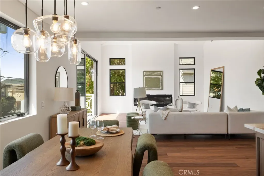 From the main living area and its elevated mezzanine, the home extends its narrative outward—where, at dusk, the distant lights of Palos Verdes shimmer across the horizon like a living tapestry, a quiet spectacle that transforms the everyday into something cinematic. It is a view not merely seen, but experienced, adding a sense of place that is both grounding and transportive.