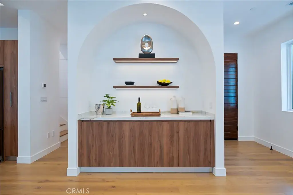 Step into modern luxury with this beautifully crafted 4-bed, 3.5-bath detached townhome, where thoughtful design and high-end finishes come together to create the perfect living space. Artfully designed by Alex Ioda, whose signature modern minimalism defines the home’s unique presence, and built by Ioda Construction Inc., this residence blends clean lines, warm textures, and purposeful functionality throughout. Wide-plank oak engineered hardwood flooring complements the custom-built cabinetry, durable porcelain kitchen countertops, and a striking waterfall island that serves as the home’s central gathering point. High-end appliances, including a JennAir range, refrigerator, microwave drawer, and Bosch dishwasher, ensure a top-tier culinary experience, while under-cabinet lighting and a stylish dry bar add extra flair.