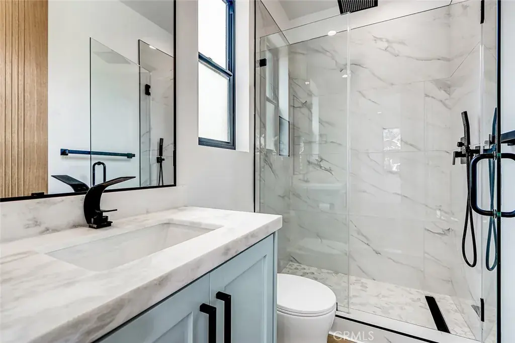 Welcome to 2604 Grant Ave #A, Redondo Beach — a beautifully crafted, modern coastal home offering style, comfort, and smart living. This newly constructed residence is one of three luxury townhomes designed with thoughtful features and high-end finishes throughout. Unit A stands out with its private yard, stained exposed beams, vaulted ceilings, as well as a mezzanine giving it a spacious, airy feel. Inside, you’ll find scratch-resistant and waterproof flooring throughout — ideal for families, pets, and carefree living. The open-concept kitchen boasts under-cabinet lighting, a farmhouse sink, gas stove and oven, microwave, dishwasher, refrigerator, and a sleek electric exhaust hood. Custom touches like backlit crown molding, a chandelier over the staircase, and mirrors pre-installed in every bathroom elevate the interior aesthetic. The primary suite features a large ceiling fan, Jack and Jill sinks, a standalone soaking tub, and a luxurious rain shower head. Every bedroom is pre-wired for wall-mounted TVs and ceiling fan installation, while the home is climate-controlled with a Nest thermostat system connected via WiFi for seamless temperature management. Enjoy cozy nights with remote-start gas fireplaces and entertainment-ready spaces including a large flat-screen TV already installed. The roof deck is fully prepped with gas lines, sink, and electrical for a future grill or firepit, making it the perfect spot for sunset gatherings. This unit includes a 2-car garage plus additional covered parking, Ring camera system, EV charger-ready outlet, automatic garage door opener, and dedicated washer/dryer room ready for your appliances. The property also offers a sump pump with backup, gas water heater, fire sprinkler system, and comprehensive smoke and carbon monoxide detectors for peace of mind. Outside, you’ll find automatic driveway lighting, turf inserts for curb appeal, drip and sprinkler systems with separate timers and bells, exterior electrical plugs, and minimized HOA fees thanks to efficient planning. Located in desirable North Redondo Beach, close to shops, restaurants, parks, and just minutes from the beach — 2604 Grant Ave #A is more than a home, it’s a lifestyle. Don’t miss this opportunity to own a turn-key modern masterpiece in one of the South Bay’s most sought-after neighborhoods!